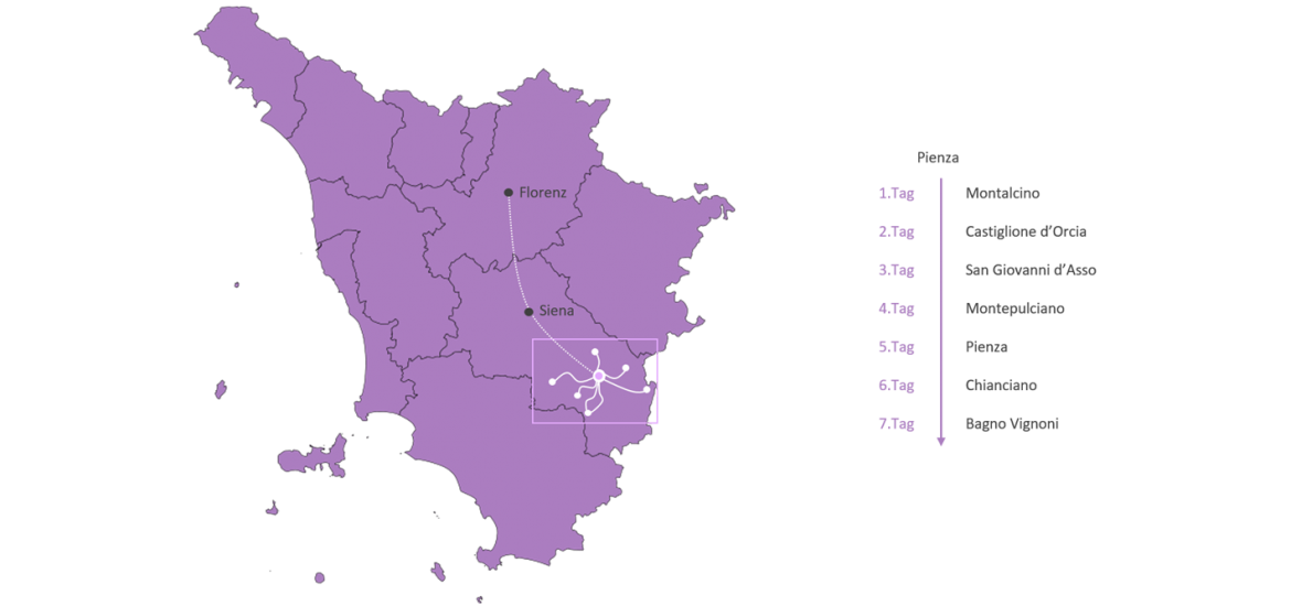 Was ist eine logische Konsequenz, wenn Pienza auf einem Berg liegt und man morgens aufbricht und mit dem Bus irgendwohin hinfährt?