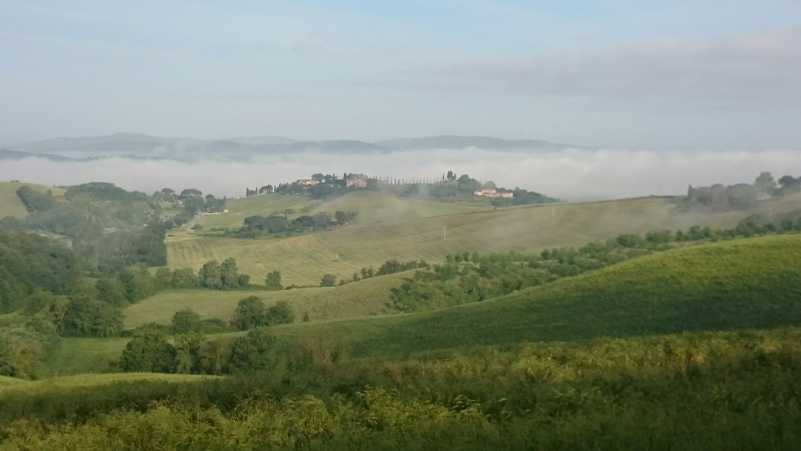 Im Moment sitze ich in einer ganz kleinen Osteria im schönen San Quirico d’Orcia und esse die Pasta meines Lebens… mit Pecorino gefüllte, in Butter geschwenkte und mit Haselnüssen bestreute Ravioli. Ich genieße jedes einzelne Kohlenhydrat… ich muss mich ja auch stärken, denn morgen werden es über 30 km und es geht „hoch“ zum Monte Amiata.