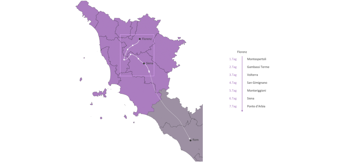 Meine erste Tour durch die Toskana im Sommer 2012: Eine schlechte Vorbereitung und die heiße Jahreszeit machten die Reise zu einem wirklichen „Abenteuer“ für mich. Auch wenn ich die Tour leider vorzeitig abbrechen musste… es waren unvergessliche Tage mit vielen intensiven Erfahrungen.