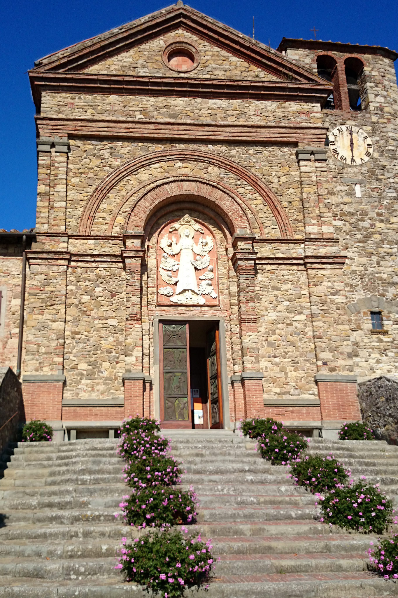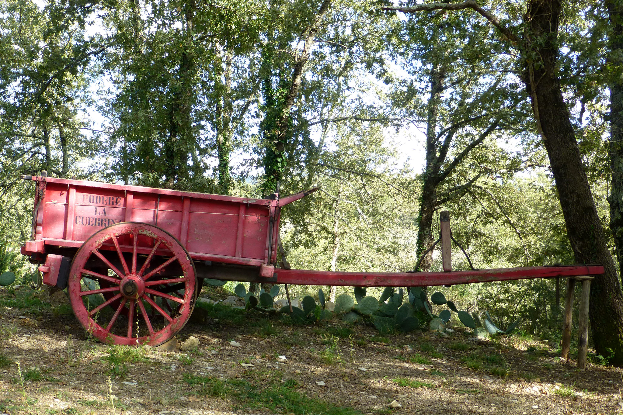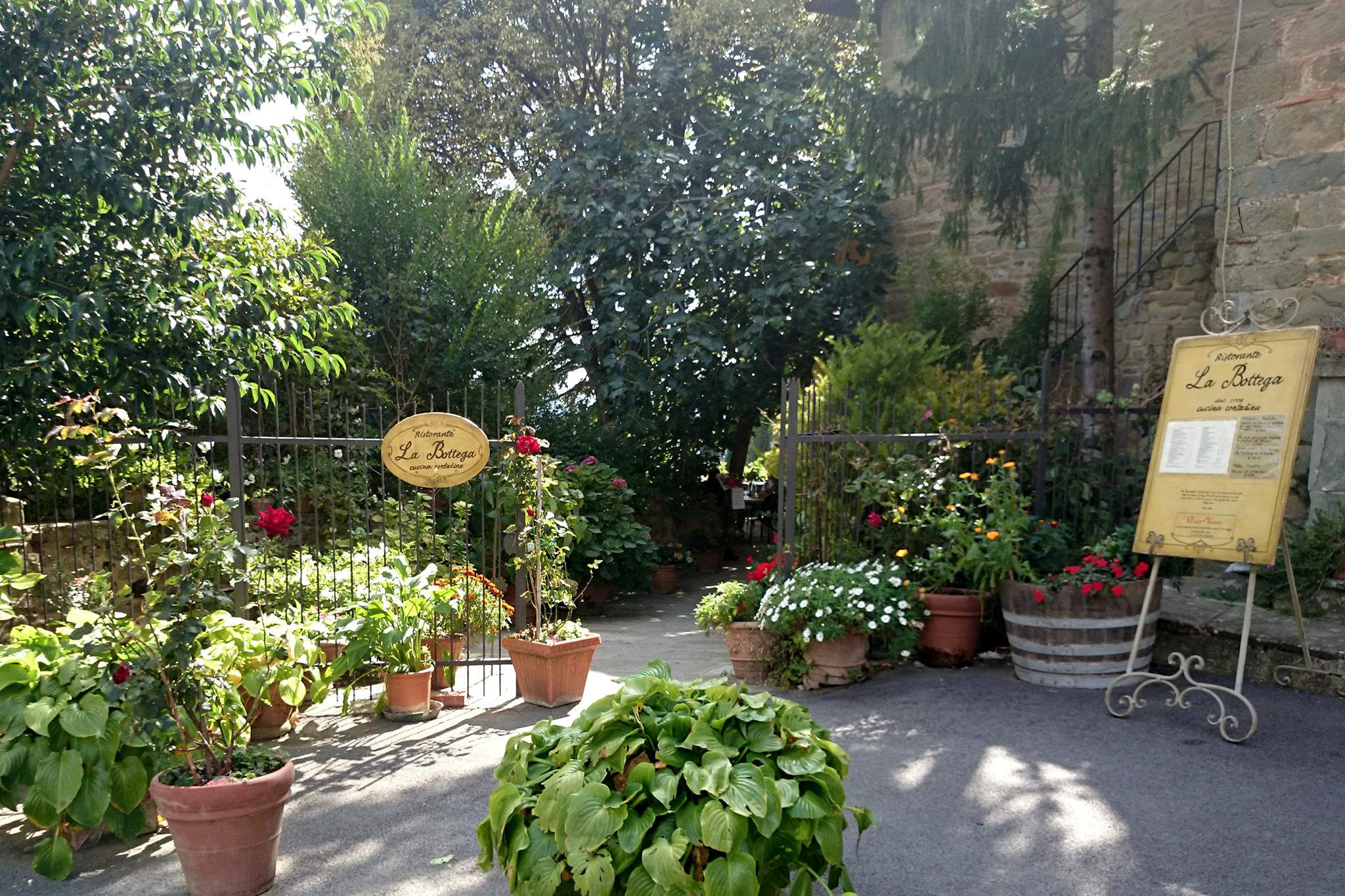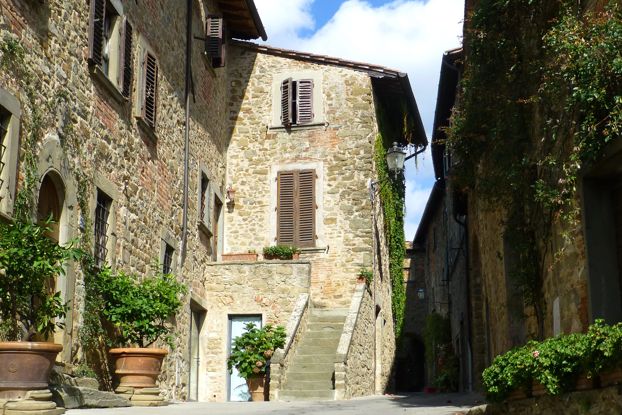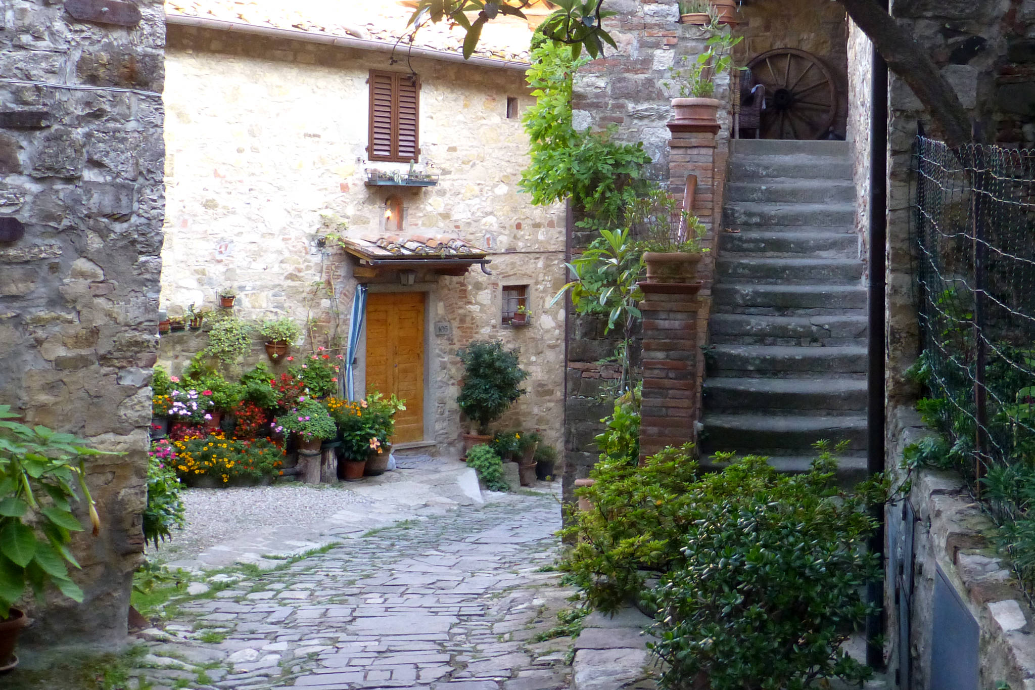 Nachdem ich gestern durch das Chianti-Gebiet marschiert bin und vor lauter Bäumen den Wein nicht gesehen habe, hat sich das auf der heutigen Strecke grundlegend geändert. Ein Weinberg folgte dem nächsten und alle Reben hingen voller Trauben. Sangiovese heißt die Traubensorte übrigens, die später bei einem Chianti den größten Anteil ausmachen. Einer dieser Weinberge warf mich heute vormittag leider etwas zurück, da er mir und meiner Route im Weg stand und aufgrund eines hohen Zaunes auch nicht zu durchqueren war. Das sollte aber heute für lange Zeit das einzige Missgeschick bleiben. Überhaupt war der Tag und die Strecke heute schöner als gestern. Es war gut, dass ich auf den gestrigen Rat gehört habe (irgendwie hatte ich wohl doch die entscheidenden Worte verstanden) und meine Route nochmal geändert habe. Die Strecke war dadurch zwar zwei Kilometer länger, führte aber durch drei tolle Orte… Montefioralle, Panzano und Volpaia, wobei mir Montefioralle am Besten gefallen hat. Lustig war, dass ich heute eine ganze Weile einen kleinen und sehr lebhaften Hund als Begleiter hatte. Mal lief er wedelnd vor mir her, mal sprang er aufgeregt neben mir durch’s Gras und schaute mich dabei fragend an. So plötzlich wie er aufgetaucht war, so unerwartet war er auch auf einmal wieder im Wald verschwunden. Kurz vor meinem Etappenziel durfte ich dann noch den Unterschied zwischen einem „online“ geplanten und einem wirklichen Weg feststellen. Die blaue Linie auf der Karte war da, der Weg aber weit und breit nicht zu sehen. Dieser unvorhergesehene Umweg war aber zum Glück überschaubar, so dass ich gegen 18:00 Uhr meine heutige Unterkunft in Radda erreicht habe. Sie rangiert leider auf Rang drei meiner bisherigen Unterkünfte, aber für eine Nacht ist sie ok. Praktisch an meinem Zimmer ist, dass meine morgige Etappe genau hier vor der Tür beginnt… vor allem, da die Strecke mit knapp 29 Kilometern die bislang längste wird. Ich hoffe mal, dass meine „Wehwehchen“ mir dann keinen Strich durch die Rechnung machen. Voltaren auf den Schultern, Tiger Balm auf den Waden und Bepanthen woanders müssen über Nacht helfen.