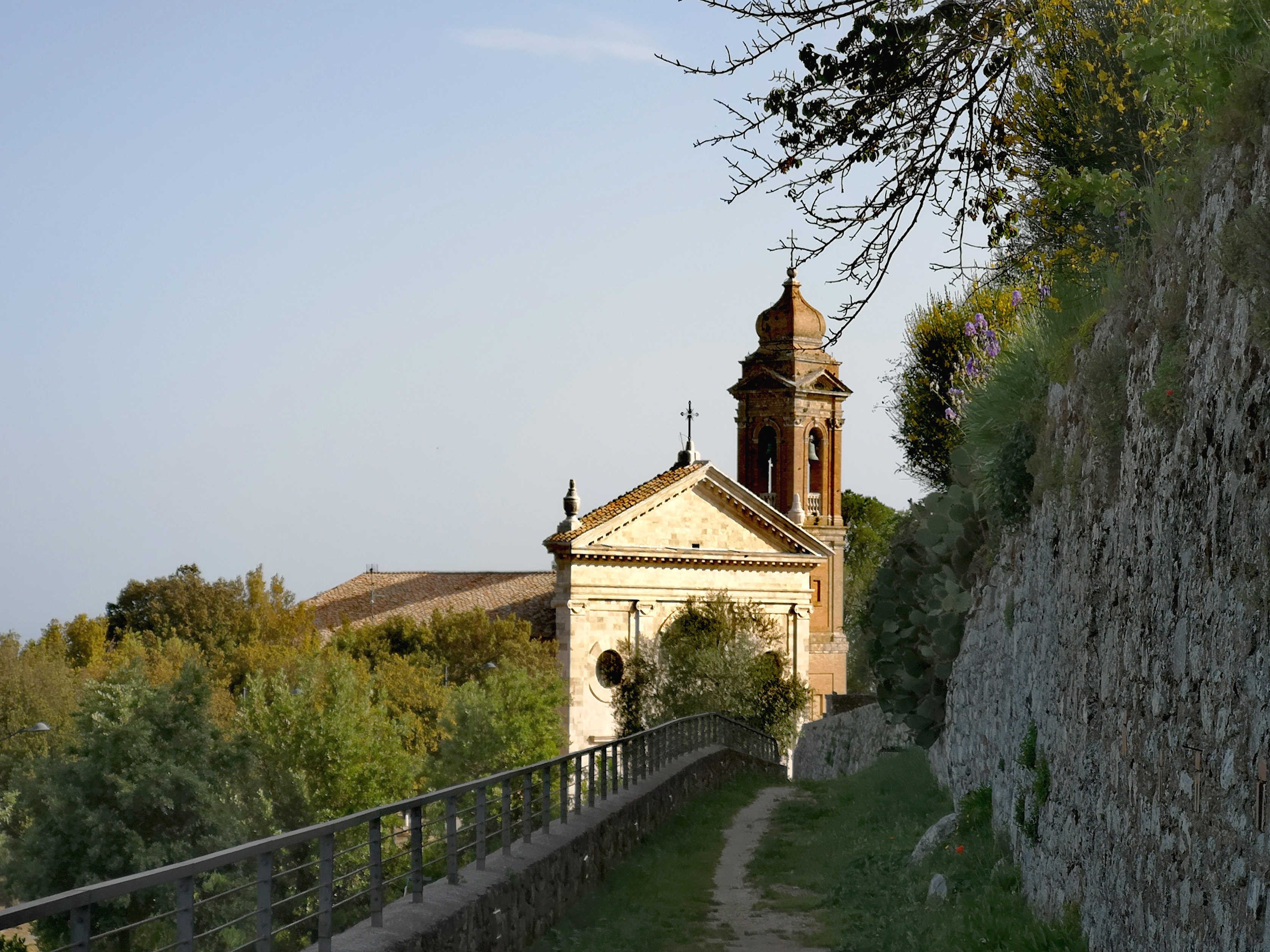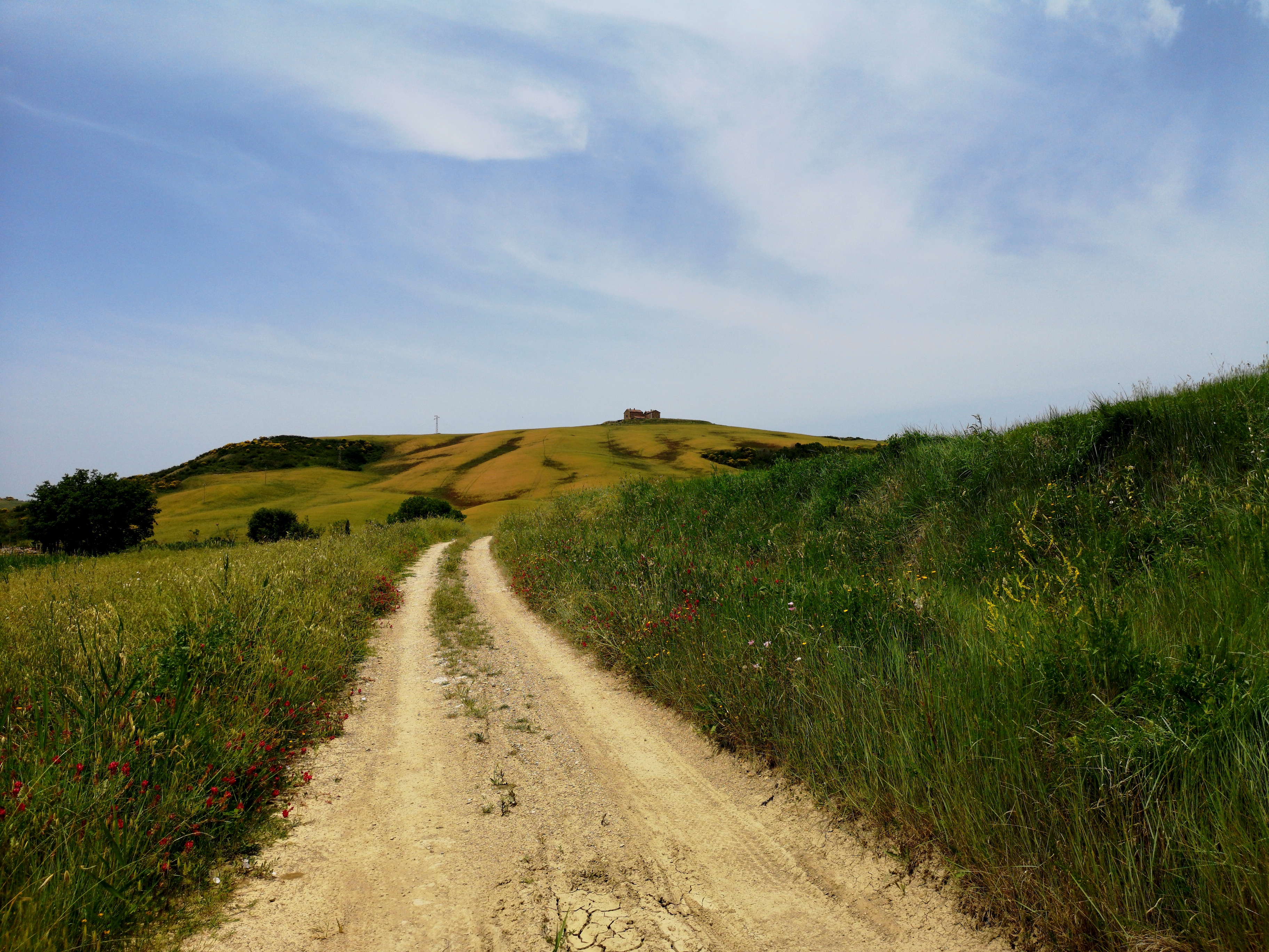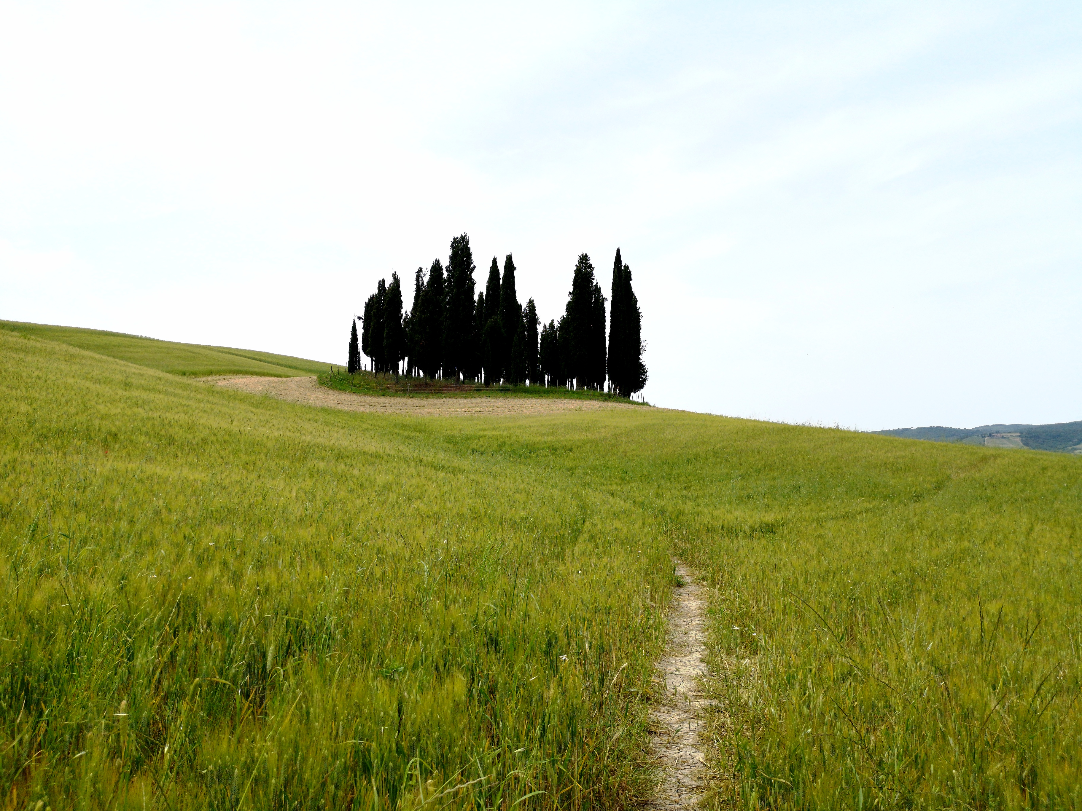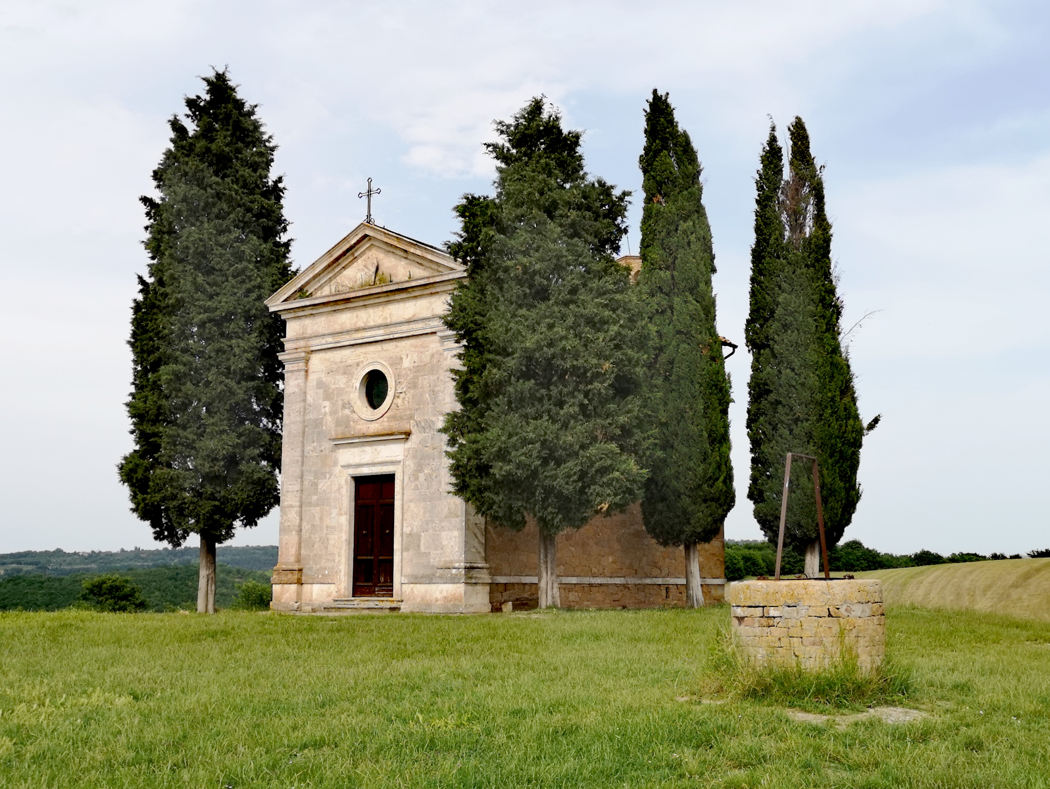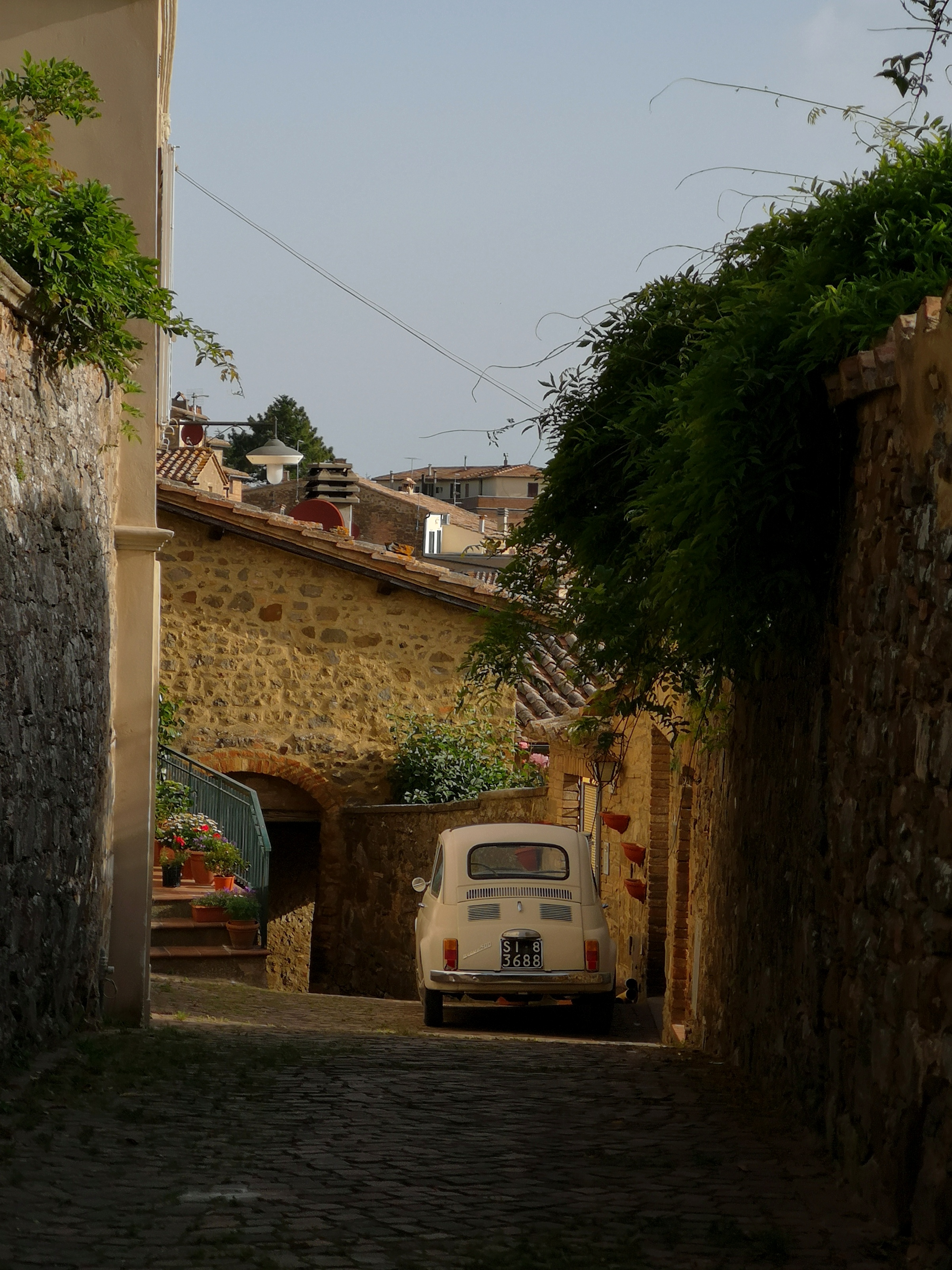 Nachdem ich mich heute Morgen um viertel vor sechs aus dem Bett geschwungen gequält hatte, saß ich kurze Zeit später im Bus 112 nach Torrenieri. Dort bin ich dann einmal umgestiegen und war schon um halb acht in Montalcino. Und was soll ich sagen… außer mir war da um diese Zeit so gut wie niemand. Herrlich, denn Montalcino ist echt schön. Nach einem erneut kleinen und leckeren Frühstück bin ich dann losgezogen. Es war so angenehm, nur drei Liter Wasser, zwei Äpfel und vier gut belegte Brote im Rucksack zu haben. Da bin ich anderes gewohnt. Vielleicht hätte ich aber besser noch zwei Liter mehr zu trinken mitnehmen sollen… so musste ich mittags ungeplant an der Via Cassia „rechts abbiegen“, um in San Quirico d’Orcia Wasser zu kaufen. Bei der Gelegenheit habe ich dann direkt eine große Runde durch den Ort gedreht. San Quirico mag ich sehr… nicht nur wegen der tollen „Pici cacio e pepe“, die ich heute in einer kleinen Trattoria gegessen habe. San Quirico ist so wunderbar einfach und unaufgeregt… was daran liegen mag, dass es hier nicht viele Touristen gibt. Warum auch immer. Wenn man nichts gegen Zypressen hat, muss man die Strecke zwischen San Quirico d‘Orcia und Pienza einfach lieben. Und spätestens an der Capella della Madonna di Vitaleta ist man ergriffen von der einmaligen Landschaft… zumindest geht es mir so. Die letzten (Kilo-)Meter nach Pienza führten dann durch den wahrscheinlich schönsten Teil des Val d’Orcia.