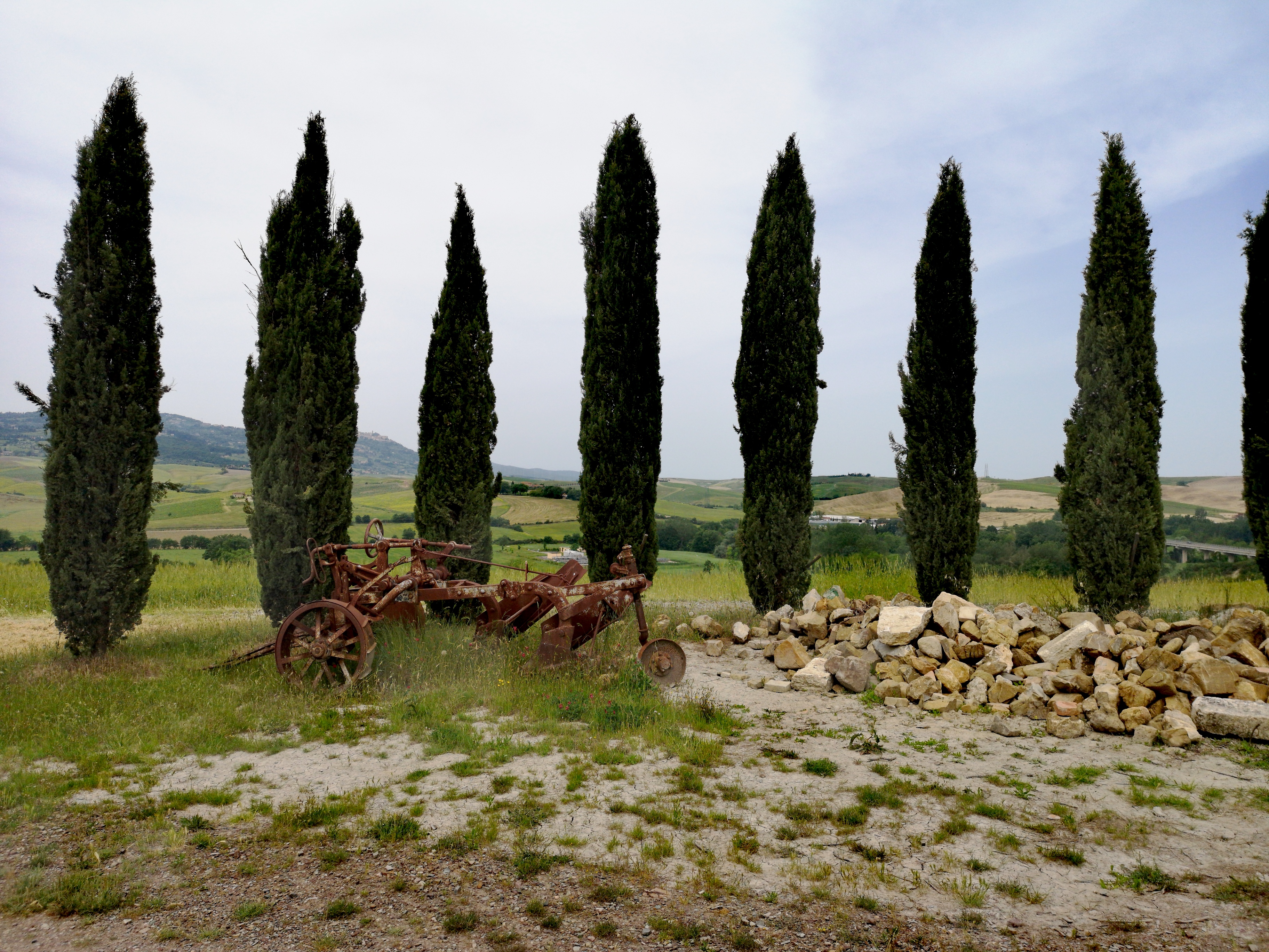 Ich bin total begeistert, es war einfach ein toller Tag. Obwohl ich zwischen Montalcino und Pienza schon unterwegs war und viele „must-sees“ bereits kannte, hat mich die heutige Strecke (die ich so noch nicht gegangen bin) echt überwältigt… und auch ziemlich geschafft. Rechnet man den improvisierten „Abstecher“ nach San Quirico hinzu, waren es gut 30 km, die ich zurückgelegt habe. „Gut 30“ war es gegen Mittag laut Thermometer bzw. Wetter-App auch. Da habe ich mich kurz geärgert, dass ich meinen „schicken“ Sonnenhut nicht mitgenommen hatte.