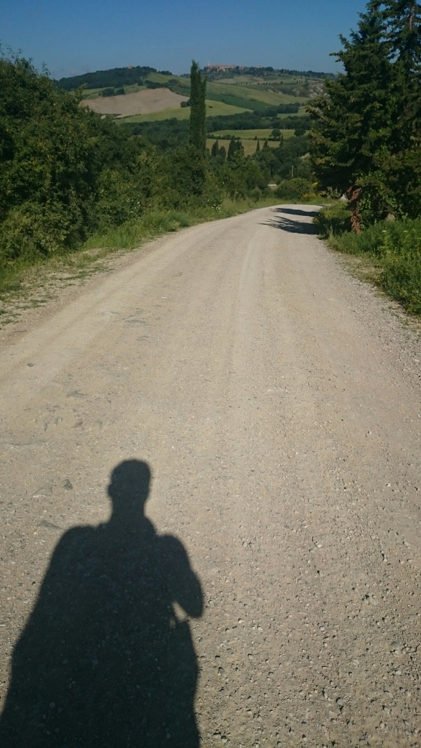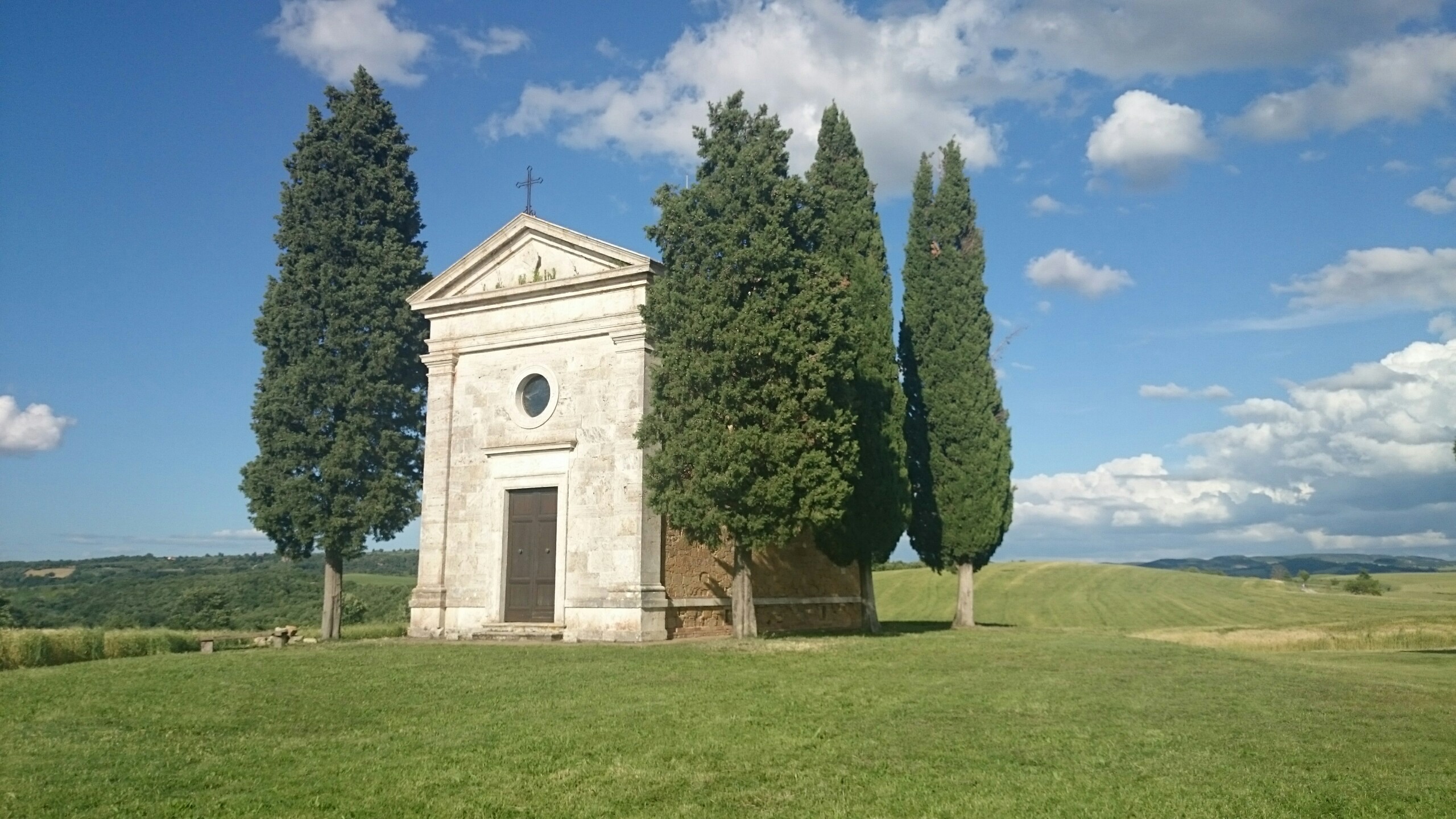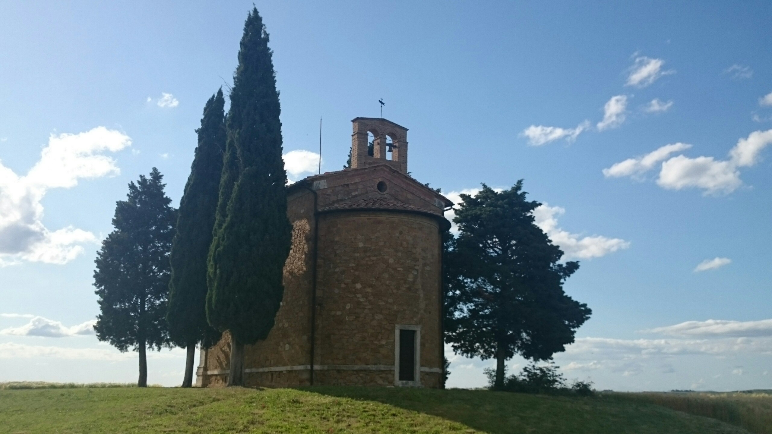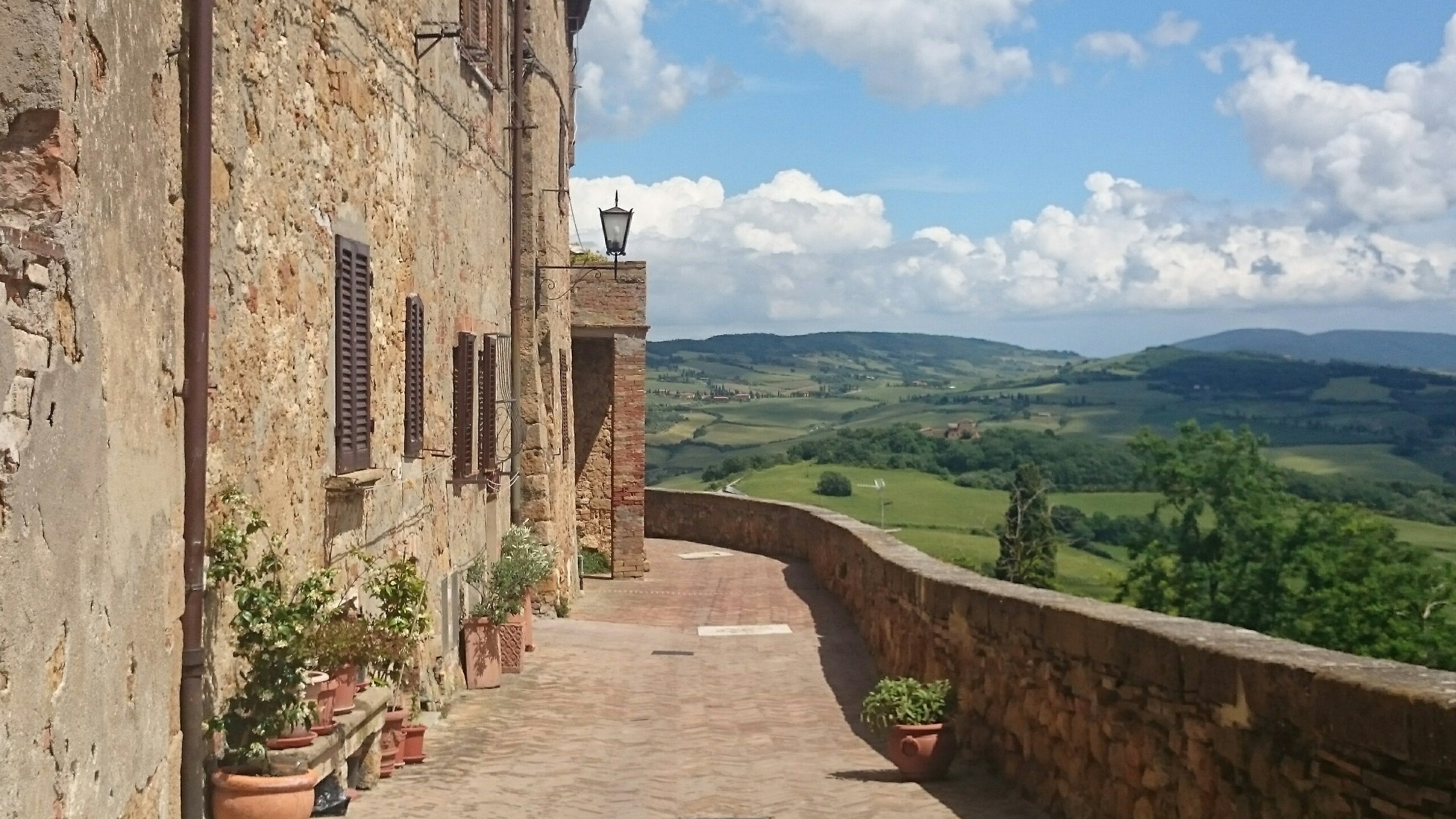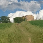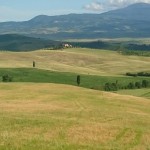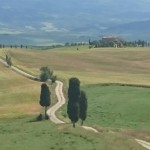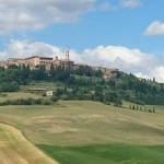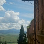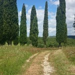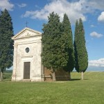 Beim Betrachten der heutigen Fotos bleibt ein Detail wahrscheinlich verborgen. Kaum hatte ich dem englischen Patienten und Sant’Anna in Camprena den Rücken zugewandt, fing es an wie aus Eimern zu schütten. Ich bin über eine Stunde durch gepflegten Starkregen marschiert. Den Rucksack konnte ich noch schnell einpacken, für mich war’s aber zu spät. Nass bis auf die Haut bin ich dann zunächst nach Pienza zu meinem B&B geschwommen, habe dort (nochmal) geduscht und bin in meinen Wechselklamotten sofort von neuem losgezogen. Es hatte bei meiner Ankunft in Pienza nämlich aufgehört zu regnen. Blöd war, dass ich dazu wieder in meine einzigen, ebenfalls durchtränkten Schuhen steigen musste. Hier gibt’s einfach wahnsinnig viel zu sehen. Pienza ist eine tolle Stadt… was man natürlich auch an den zahlreichen Besuchern merkt. Ich habe nach dem Bummeln durch die Gassen noch einen fantastischen Abendspaziergang durch’s Val d’Orcia bis zur Cappella di Vitaleta gemacht. Das waren die „fehlenden“ 10 km von heute Mittag… herrlich bei Sonnenschein und mal ohne 12 Kilo auf dem Rücken. Für mich ist die Region hier eines der absoluten Highlights der Toskana. Das merkt man auch an der Anzahl der Fotos.
