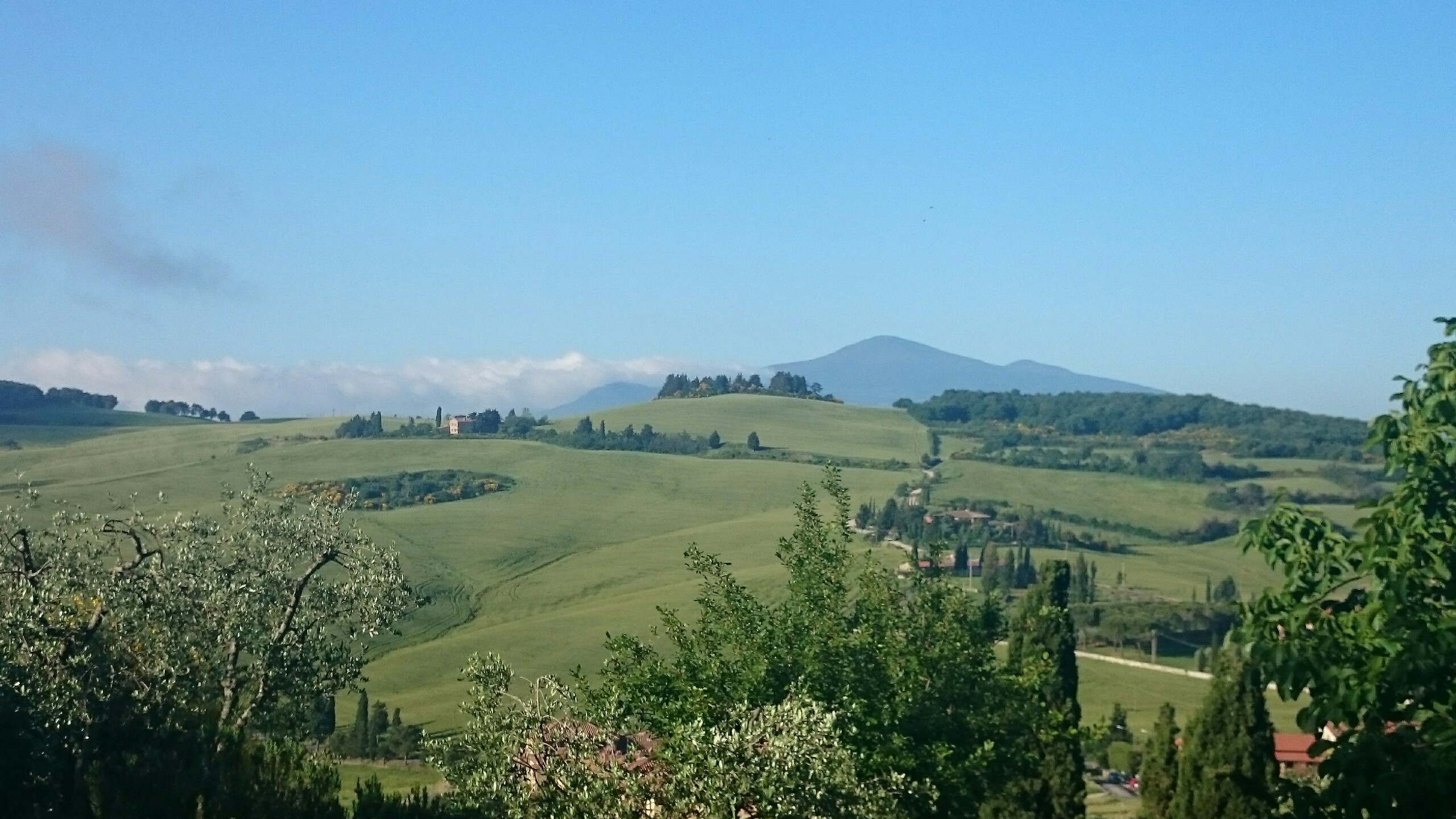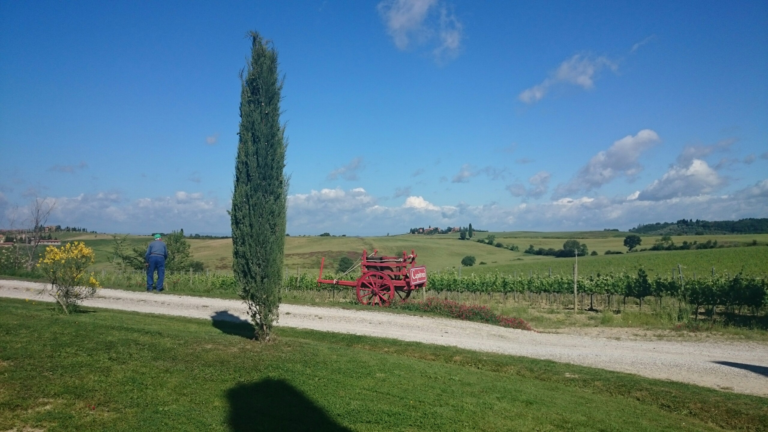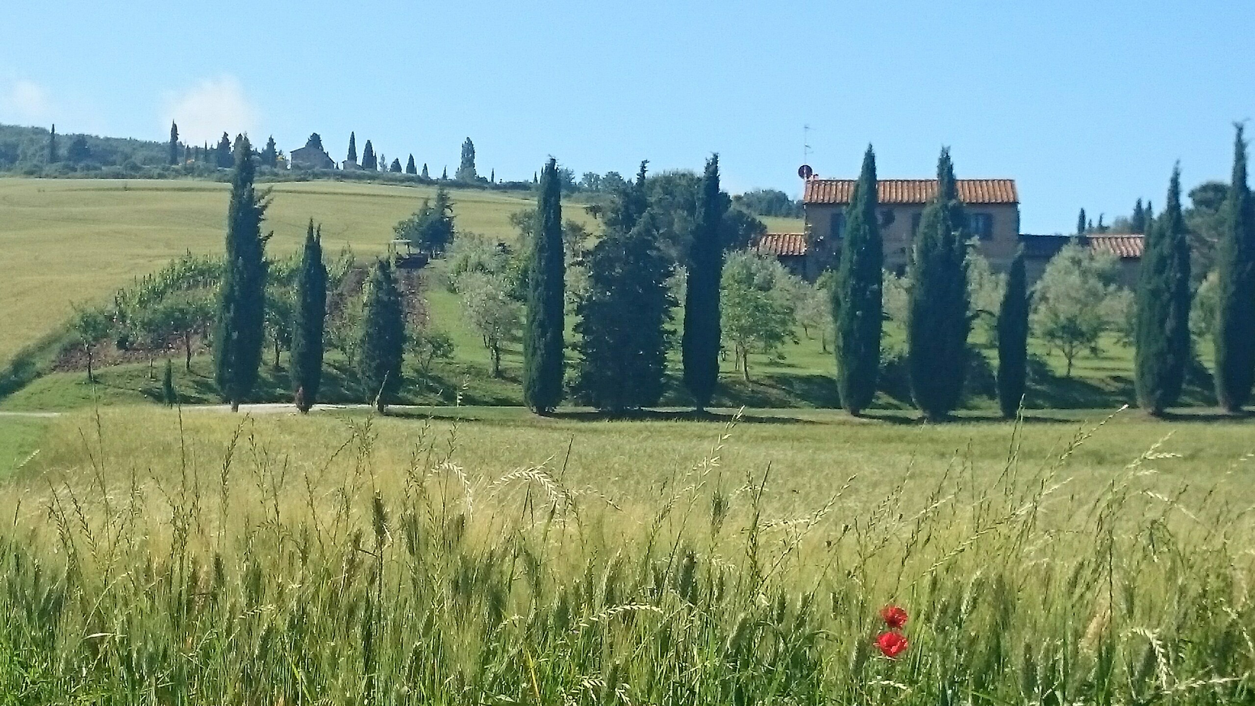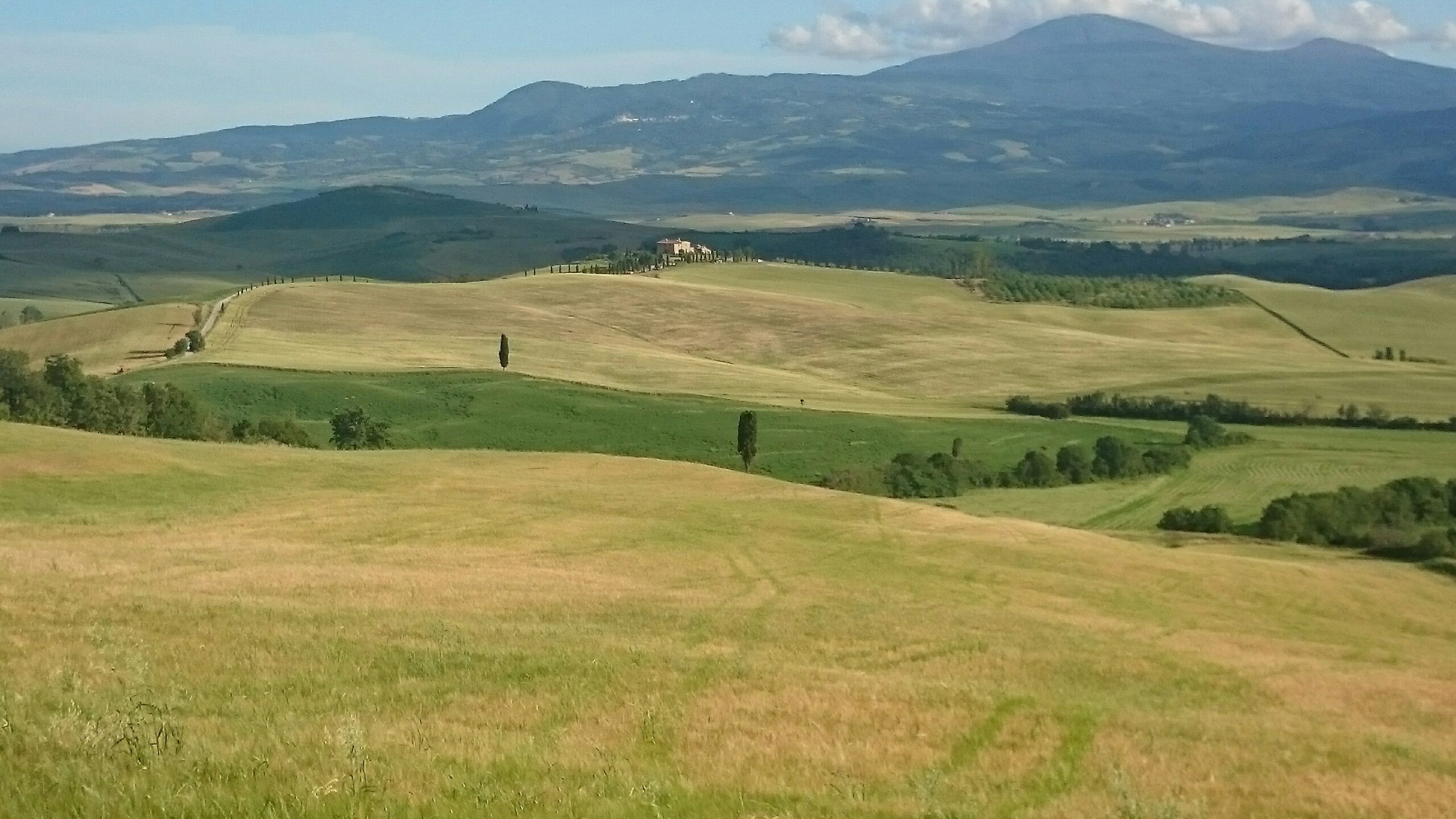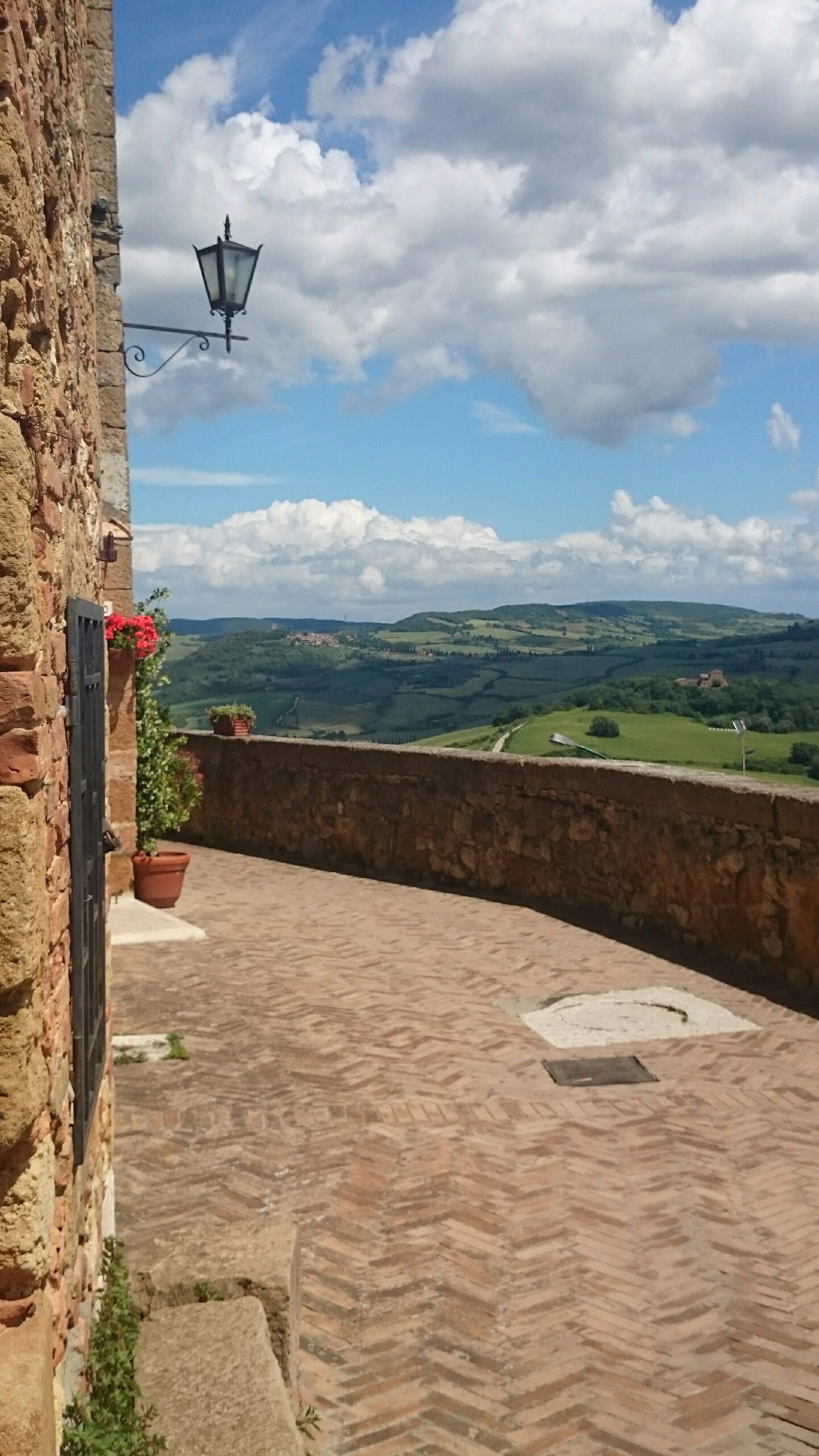 Beim Betrachten der heutigen Fotos bleibt ein Detail wahrscheinlich verborgen. Kaum hatte ich dem englischen Patienten und Sant’Anna in Camprena den Rücken zugewandt, fing es an wie aus Eimern zu schütten. Ich bin über eine Stunde durch gepflegten Starkregen marschiert. Den Rucksack konnte ich noch schnell einpacken, für mich war’s aber zu spät. Nass bis auf die Haut bin ich dann zunächst nach Pienza zu meinem B&B geschwommen, habe dort (nochmal) geduscht und bin in meinen Wechselklamotten sofort von neuem losgezogen. Es hatte bei meiner Ankunft in Pienza nämlich aufgehört zu regnen. Blöd war, dass ich dazu wieder in meine einzigen, ebenfalls durchtränkten Schuhen steigen musste. Hier gibt’s einfach wahnsinnig viel zu sehen. Pienza ist eine tolle Stadt… was man natürlich auch an den zahlreichen Besuchern merkt. Ich habe nach dem Bummeln durch die Gassen noch einen fantastischen Abendspaziergang durch’s Val d’Orcia bis zur Cappella di Vitaleta gemacht. Das waren die „fehlenden“ 10 km von heute Mittag… herrlich bei Sonnenschein und mal ohne 12 Kilo auf dem Rücken. Für mich ist die Region hier eines der absoluten Highlights der Toskana. Das merkt man auch an der Anzahl der Fotos.