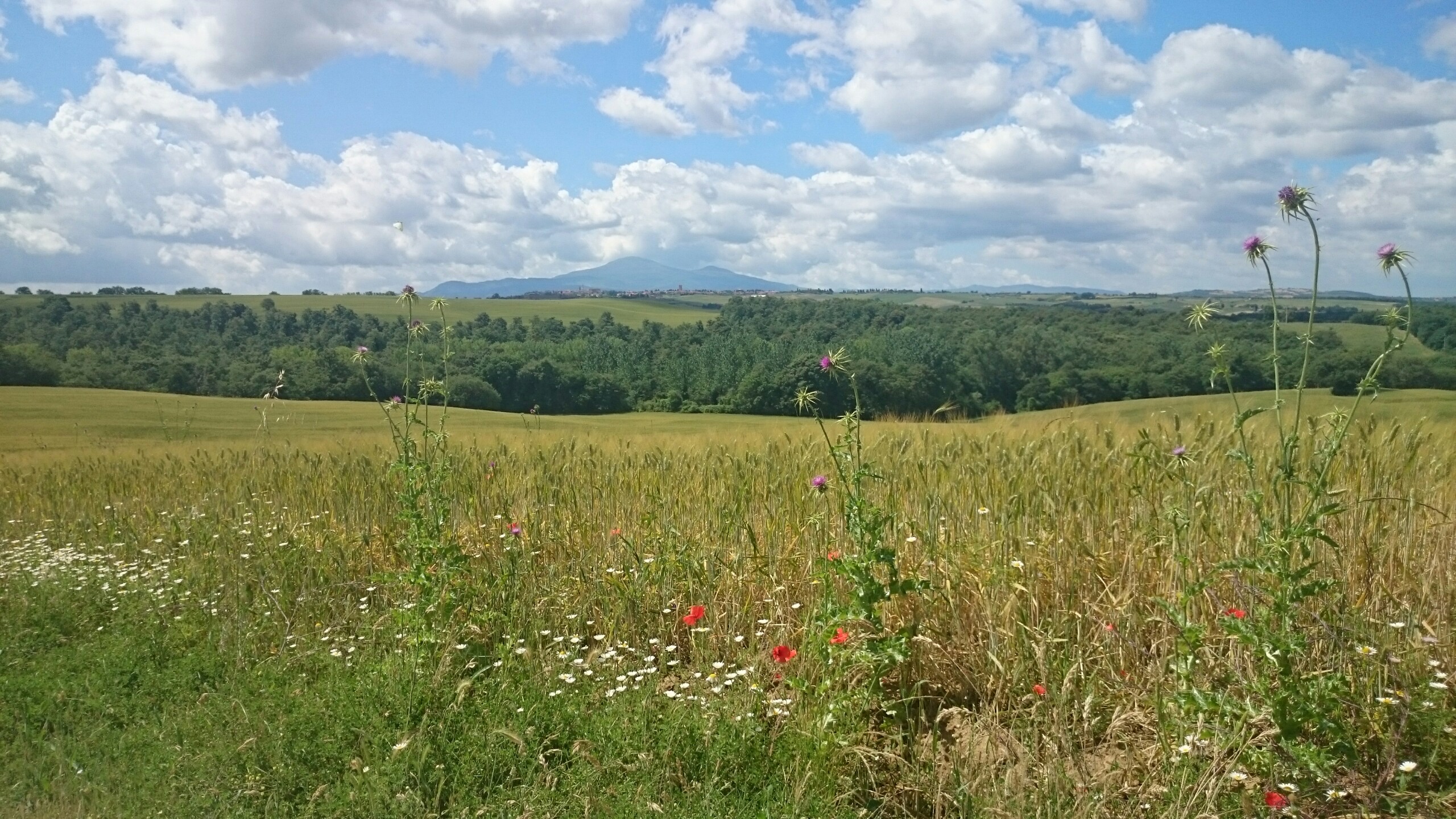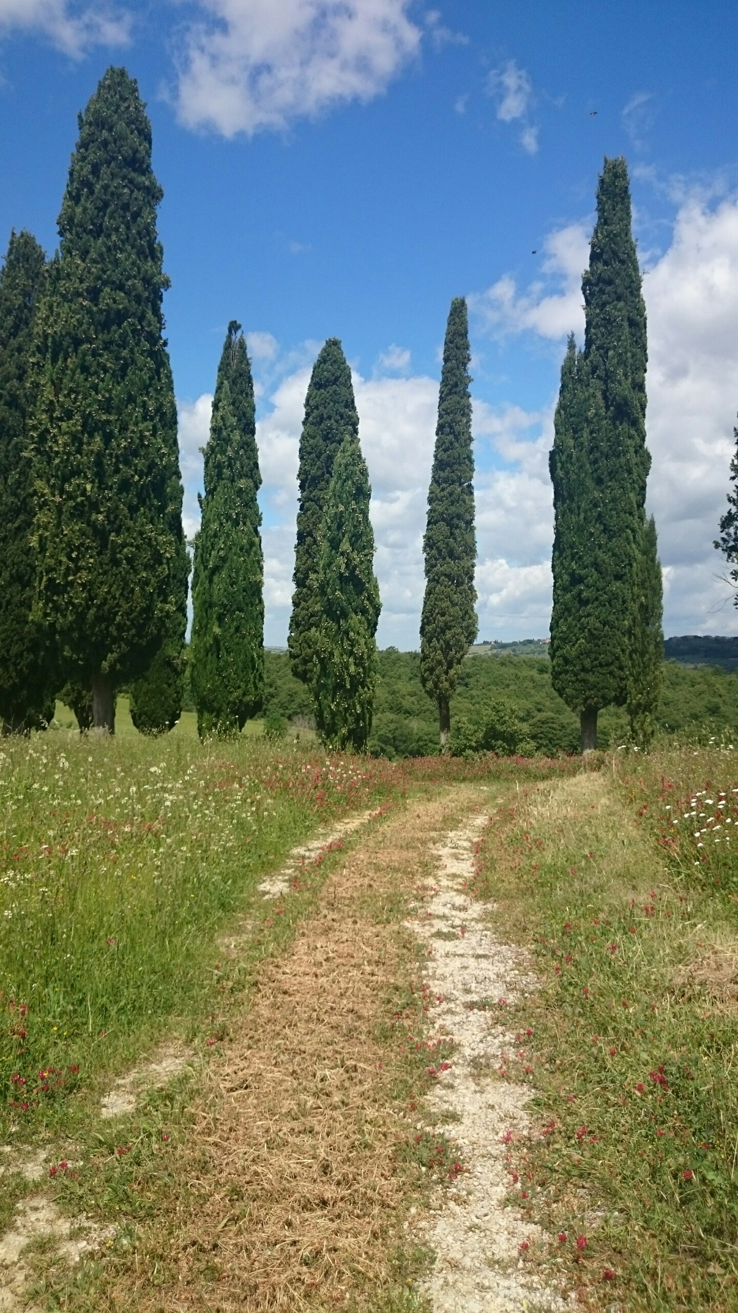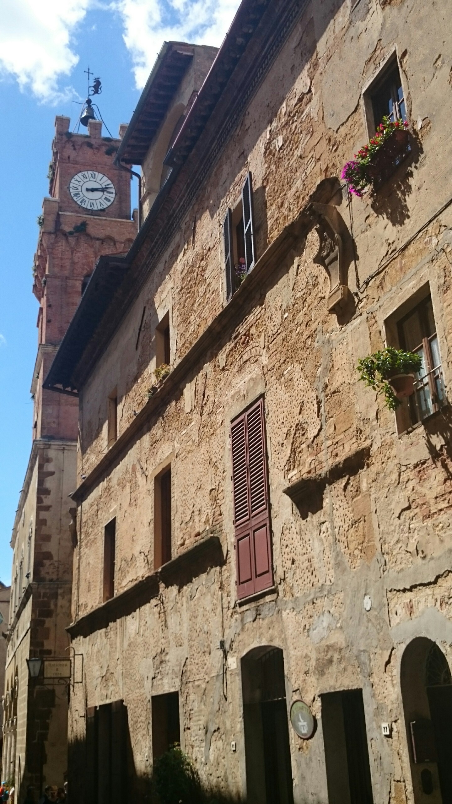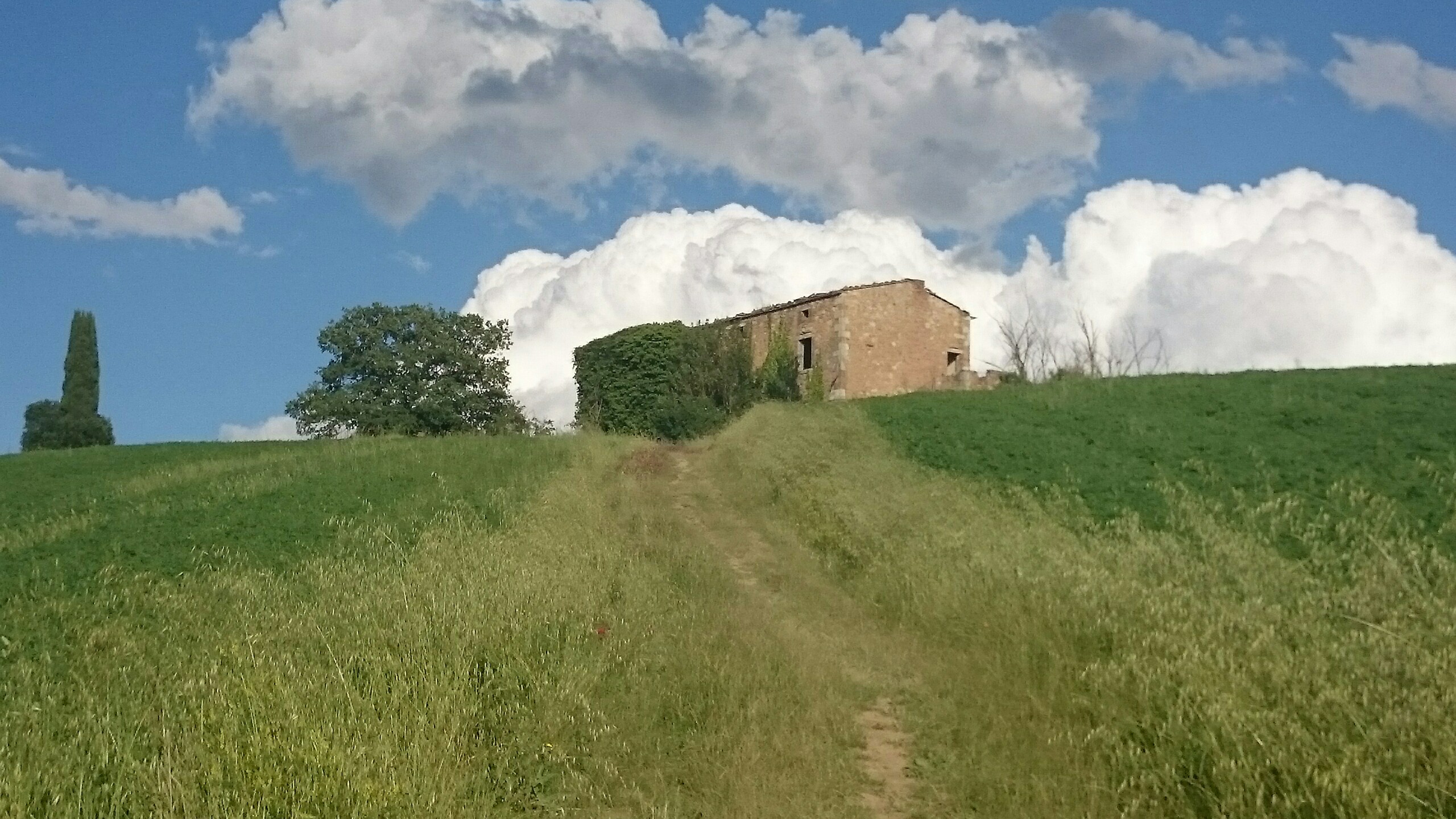 Beim Betrachten der heutigen Fotos bleibt ein Detail wahrscheinlich verborgen. Kaum hatte ich dem englischen Patienten und Sant’Anna in Camprena den Rücken zugewandt, fing es an wie aus Eimern zu schütten. Ich bin über eine Stunde durch gepflegten Starkregen marschiert. Den Rucksack konnte ich noch schnell einpacken, für mich war’s aber zu spät. Nass bis auf die Haut bin ich dann zunächst nach Pienza zu meinem B&B geschwommen, habe dort (nochmal) geduscht und bin in meinen Wechselklamotten sofort von neuem losgezogen. Es hatte bei meiner Ankunft in Pienza nämlich aufgehört zu regnen. Blöd war, dass ich dazu wieder in meine einzigen, ebenfalls durchtränkten Schuhen steigen musste. Hier gibt’s einfach wahnsinnig viel zu sehen. Pienza ist eine tolle Stadt… was man natürlich auch an den zahlreichen Besuchern merkt. Ich habe nach dem Bummeln durch die Gassen noch einen fantastischen Abendspaziergang durch’s Val d’Orcia bis zur Cappella di Vitaleta gemacht. Das waren die „fehlenden“ 10 km von heute Mittag… herrlich bei Sonnenschein und mal ohne 12 Kilo auf dem Rücken. Für mich ist die Region hier eines der absoluten Highlights der Toskana. Das merkt man auch an der Anzahl der Fotos.