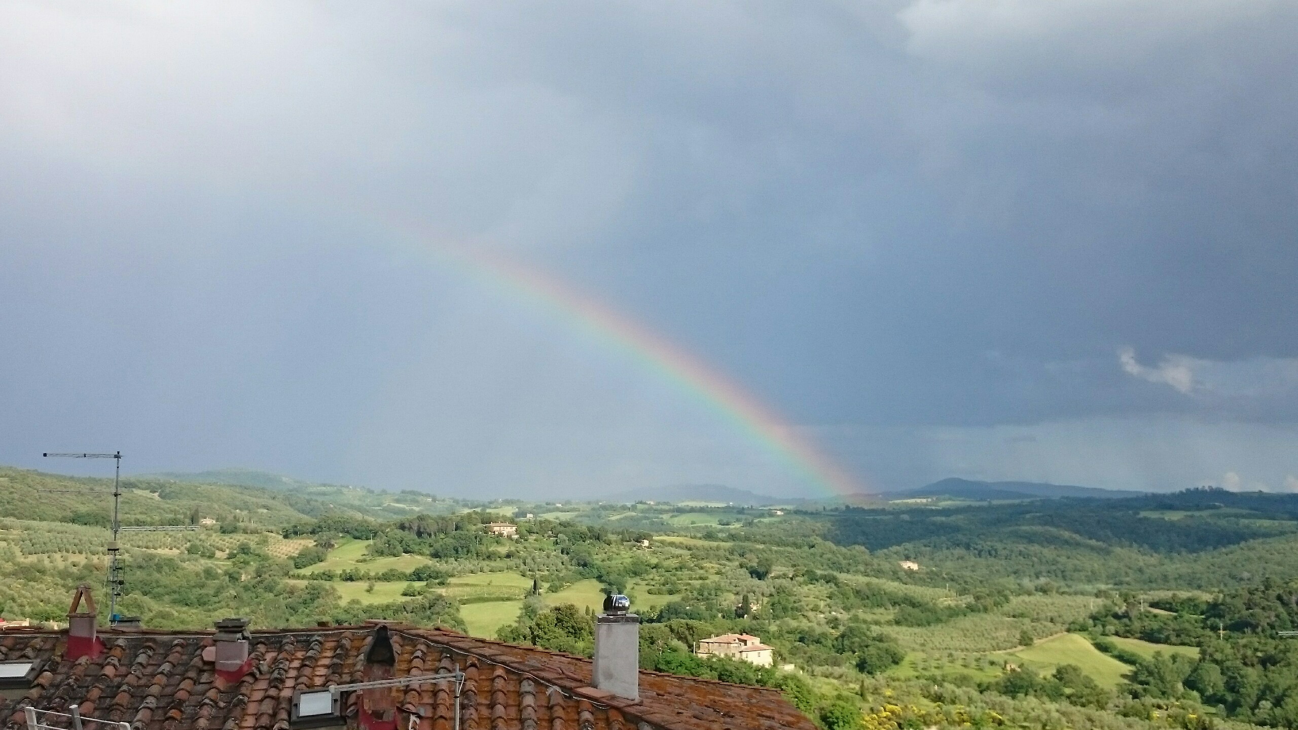 Morgen geht’s dann zurück nach Asciano, dem Ausgangspunkt meiner Tour… wäre echt schön, wenn ich nochmal so ein Glück mit dem Wetter hätte. Gerade ist genau über Castelmuzio ein ziemlich starkes Gewitter, das mich ein wenig nachdenklich stimmt.
