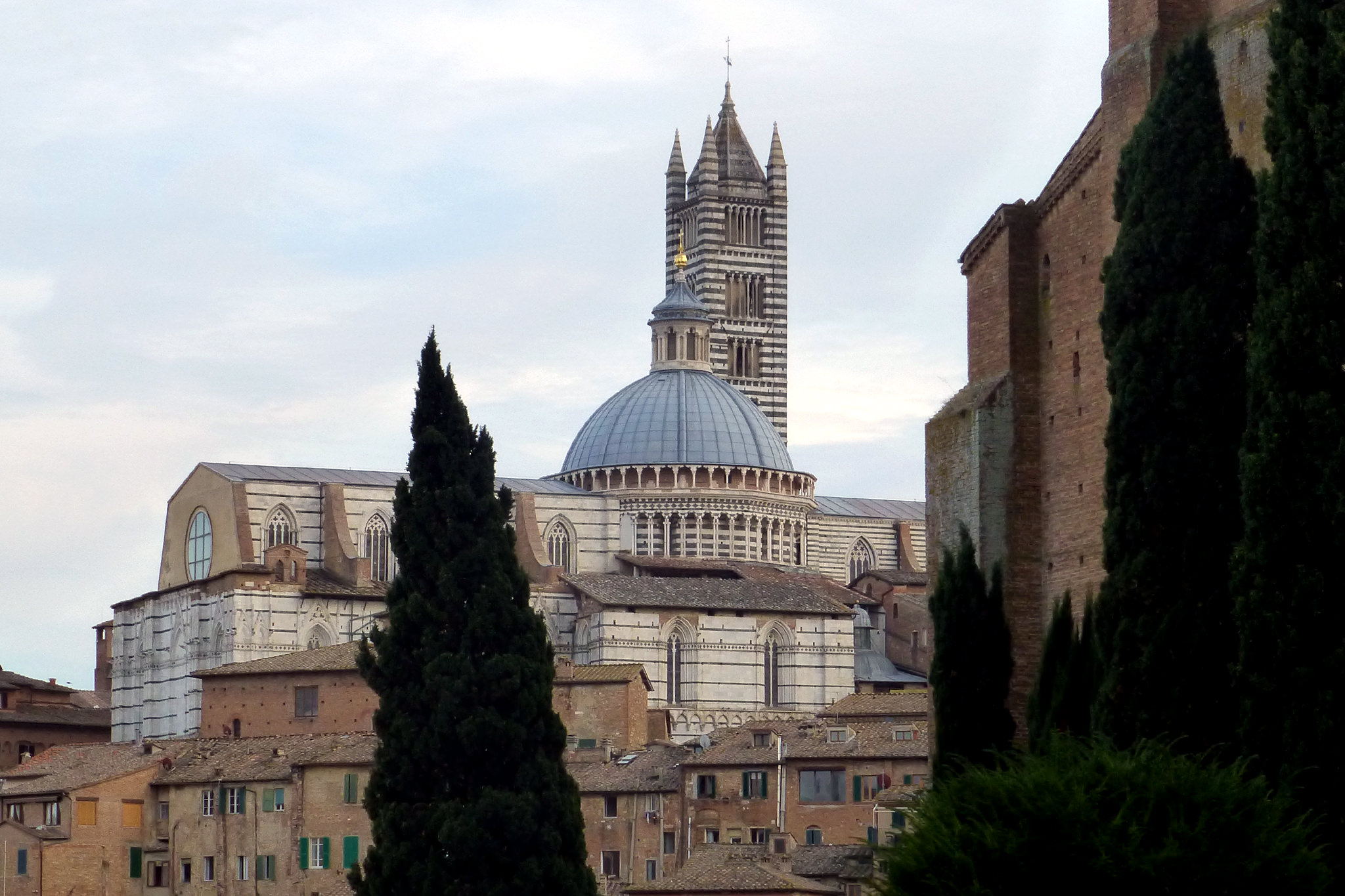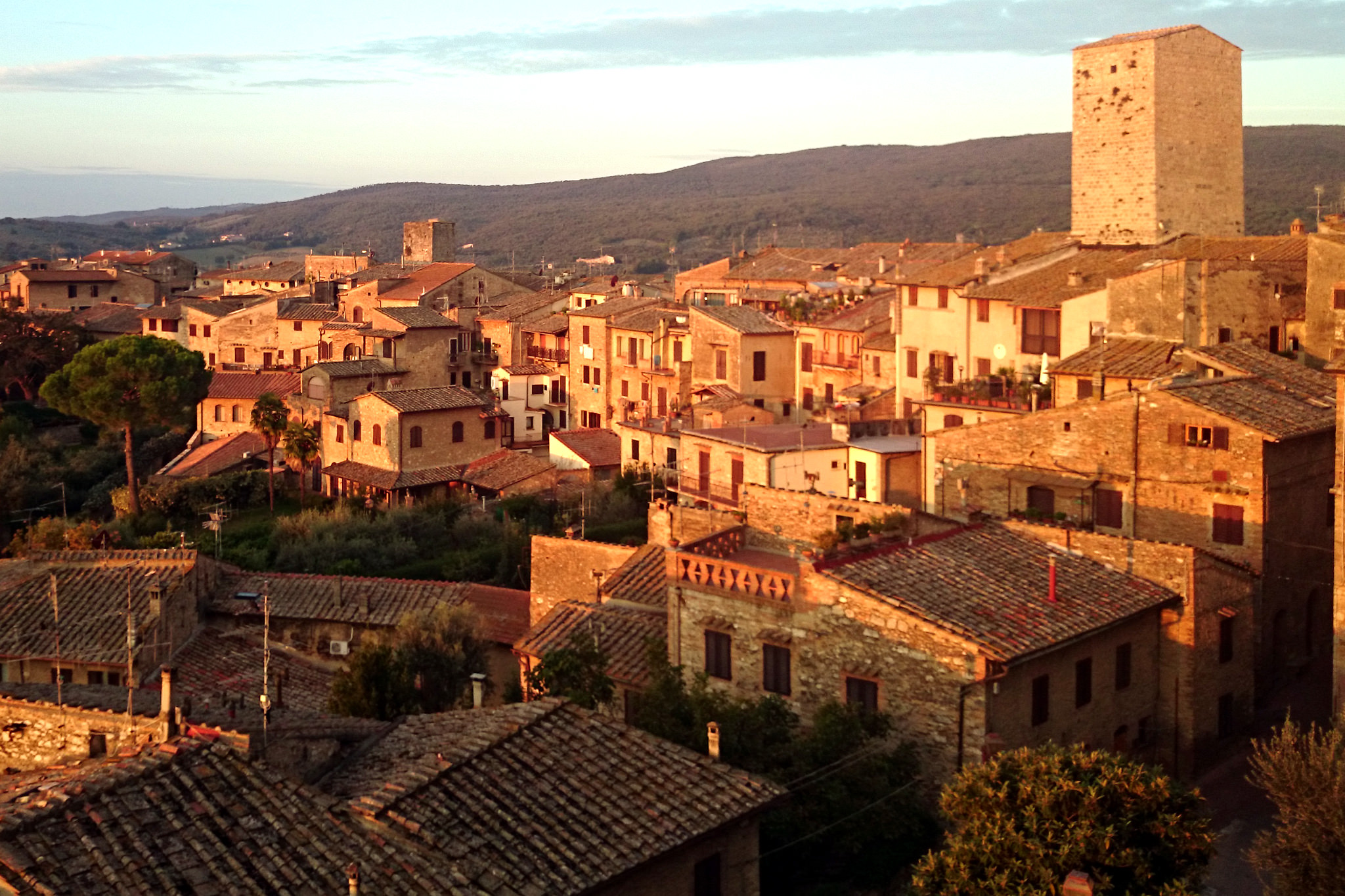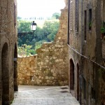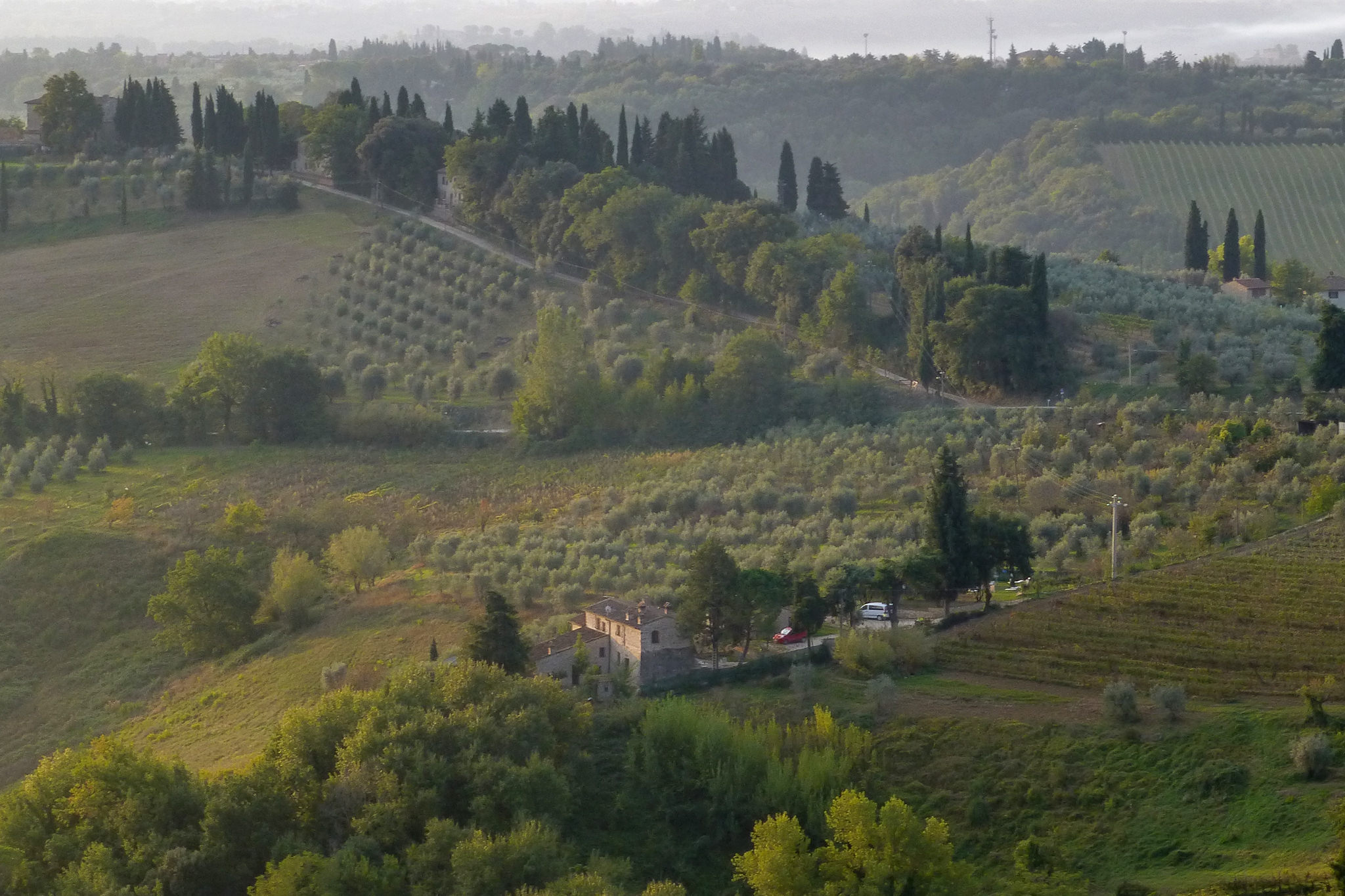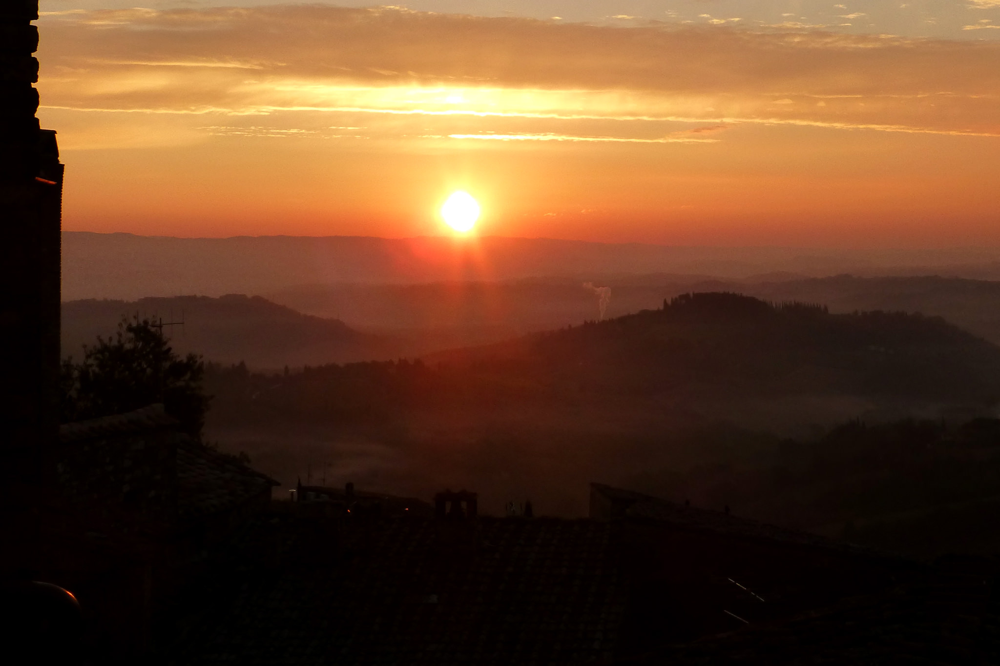 Ich sitze in Siena am Piazza del Campo und lasse die Seele und die Füße baumeln. Letztere wollen heute partout nicht mehr weiter… zum Glück ist meine Unterkunft keine 100 Meter von hier entfernt. Meine eigentliche Etappe führte heute von San Gimignano über Monte Oliveto und Montauto nach Colle di Val d’Elsa. Die insgesamt rund 21 Kilometer bin ich meistens über freundliche Wege gegangen… bis auf die 50 Meter, die ich von einem großen, freilaufenden und knurrendem Hund eskortiert wurde. Wahrscheinlich roch ich aber nicht genug nach kleinem Wildschwein, denn er beließ es zum Glück beim Knurren und drehte irgendwann wieder um. Obwohl ich meine Klamotten jeden Tag von Hand wasche und im Wechsel trage, habe ich anscheinend schon besser gerochen. Die anschließende Strecke hinter Montauto verlief relativ unspektakulär… bis ich nach einer Kurve plötzlich einen kleinen Bach überqueren durfte und auf eine wild zugewucherte Wiese zulief. Dort standen nur wenige Meter vor mir drei große Rehe. Bevor ich Foto machen konnte waren die Tiere natürlich längst im Wald verschwunden. Mein Weg war dummerweise aber auch weg… Weg weg. (Das kleine Wortspiel gefällt mir gerade… ich sollte keinen Wein mehr bestellen.) Auf jeden Fall habe ich eine ganze Weile fassungslos nach diesem Weg gesucht und ich sah mich schon einen großen Teil der Strecke wieder zurückgehen. Doch dann, kurz bevor ich umkehren wollte, entdeckte ich fast an der gleichen Stelle, an der die Rehe verschwunden waren, eine kleine Öffnung im Wald… und dahinter meinen Weg nach Colle di Val d’Elsa. Als ich die Stadt dann am frühen Nachmittag erreichte, war ich angenehm überrascht. Die Altstadt, die auf einem Berg liegt, hat ihren Namen wirklich verdient. Ich glaube, ich habe noch keine ältere Stadt gesehen… wirklich sehr schön. Ich bin dann, nach einem kurzen Rundgang, mit einem klapprigen Fahrstuhl in die sogenannte „Unterstadt“ gefahren. Diese war zwar weniger ansprechend, aber von dort aus fuhr mein Bus nach Siena.