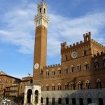 Ja,… und dort bin ich nun. Da ich in den letzten Stunden hier nicht nur einige Sehenswürdigkeiten erkundet habe, sondern auch noch zum außerhalb liegenden Bahnhof marschiert bin und mir ein Zugticket nach Asciano besorgt habe, bin ich heute bestimmt weit über 30 Kilometer zu Fuß gegangen. In Asciano beginnt morgen früh quasi der zweite Teil meiner Tour, der mich dann in ein Gebiet der Toskana führt, das ich noch gar nicht kenne. Da mir in Siena, vor allem im Dunkeln, der Piazza del Campo am besten gefällt, bleib ich noch ein Weinchen hier sitzen.