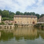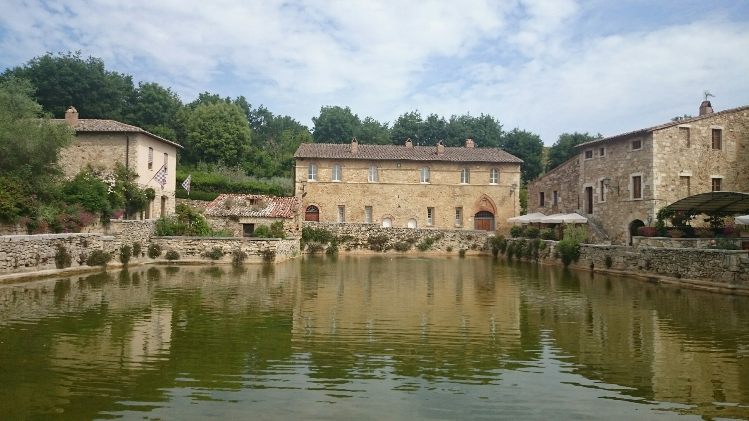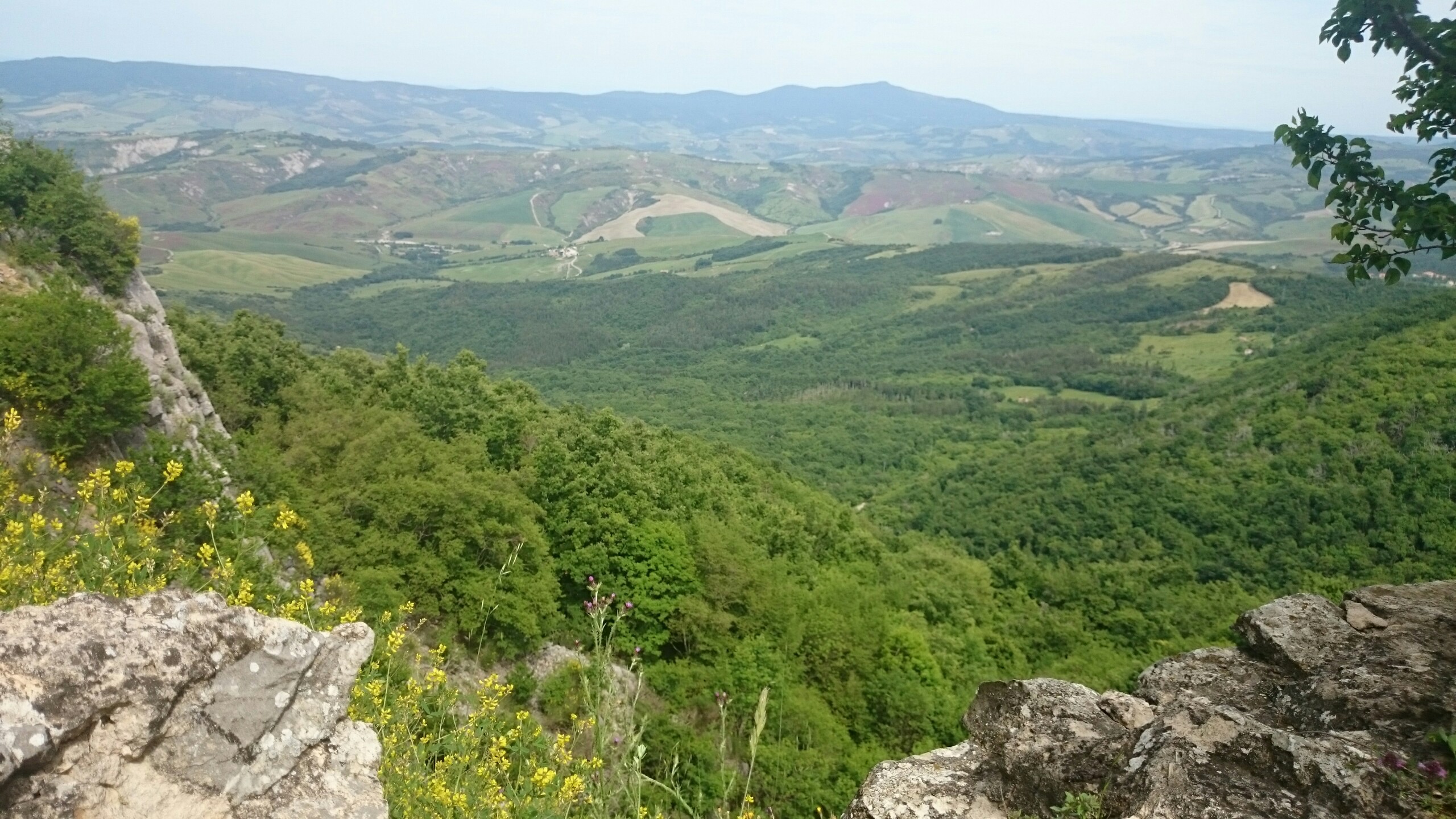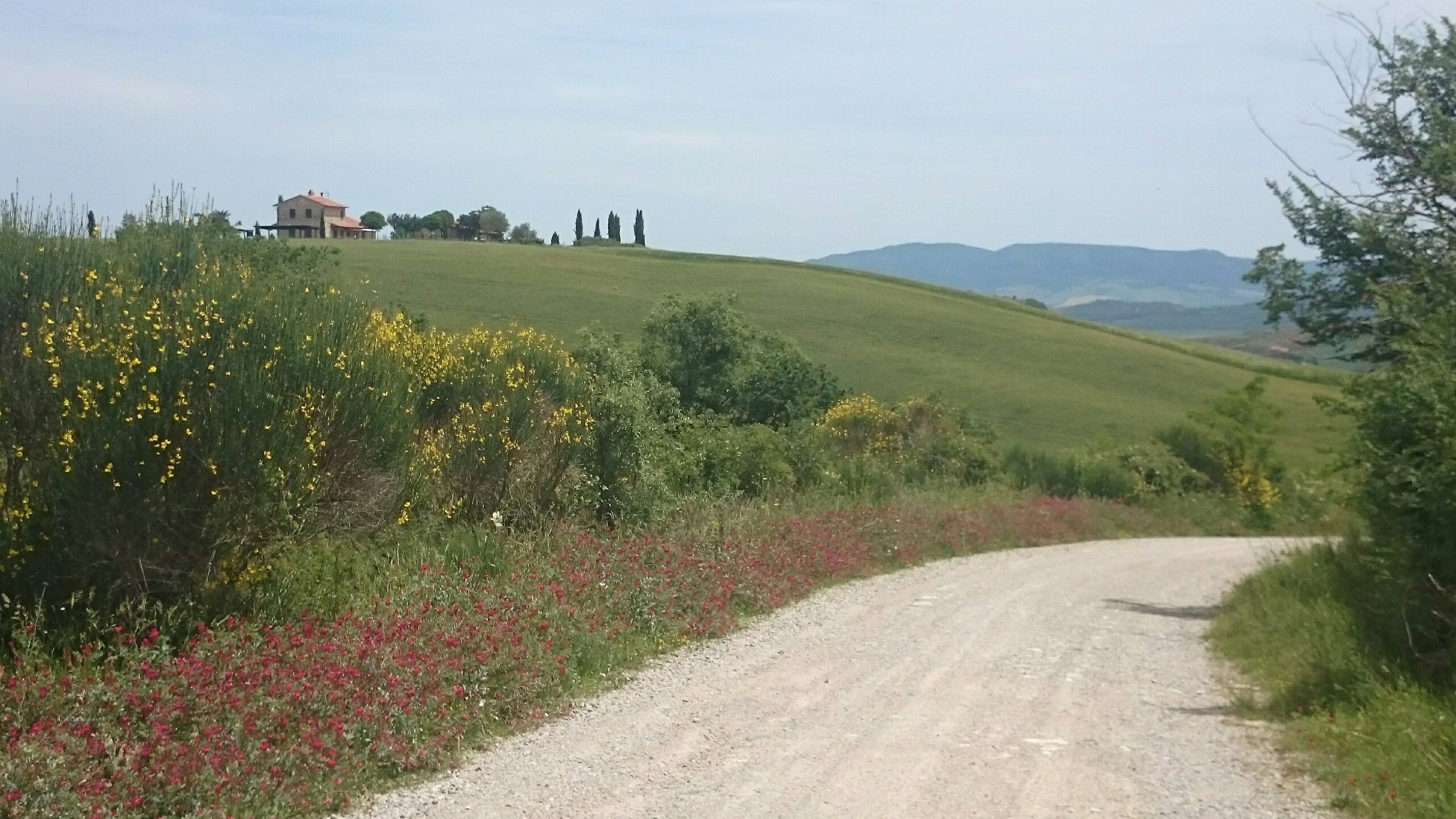 Hoch, runter, hoch, runter, hoch, hoch, hoch… Abbadia San Salvatore liegt gefühlt kurz unter der Schneefallgrenze. Und ich bin unterwegs mal ganz kurz an meine persönliche Grenze gestoßen. Das war, als ich verzweifelt versucht habe, mitten im Wald einen Hang zu ersteigen, um irgendeinen Weg zu finden. Die Schwerkraft meines Rucksacks und die starke Steigung haben mich schließlich gemeinsam überredet umzukehren und einen anderen, leider deutlich längeren Weg zu nehmen. Ich hätte… können. Umso entspannter und auch ein bißchen stolz sitze ich jetzt hier in Abbadia San Salvatore „beim Italiener“. Und habe zum Essen aus Versehen vino rosso statt bianco bestellt. Bevor der vollends seine Wirkung zeigt, noch ein paar Worte zum zurückliegenden Tag. Nachdem gestern weite Felder und Zypressen das Landschaftsbild geprägt hatten, waren es heute vormittag zunächst unzählige Olivenbäume. Da ich von meinem Missgeschick später im Wald zu der Zeit noch nichts ahnte, habe ich noch einen kleinen Abstecher nach Bagno Vignoni gemacht… etwas zu touristisch aber durchaus sehenswert. Genau wie die ehemalige Festung Rocca di Campigliola, von der aus man eine beeindruckende Sicht über die Toskana hat. Kurz darauf hatte mich dann der Wald verschluckt. Da ich erst kurz nach sieben in Abbadia San Salvatore angekommen bin, habe ich von dem Ort nicht ganz so viel gesehen… meine ganz tolle Unterkunft, das sehr, sehr alt aussehende Kloster Abbazia di San Salvatore und das gemütliche Ristorante il Cantinone (sehr gute Empfehlung meines Vermieters). Hoffentlich komme ich gleich noch vom Stuhl hoch… denn heute „habe ich Beine“.
