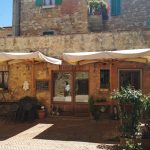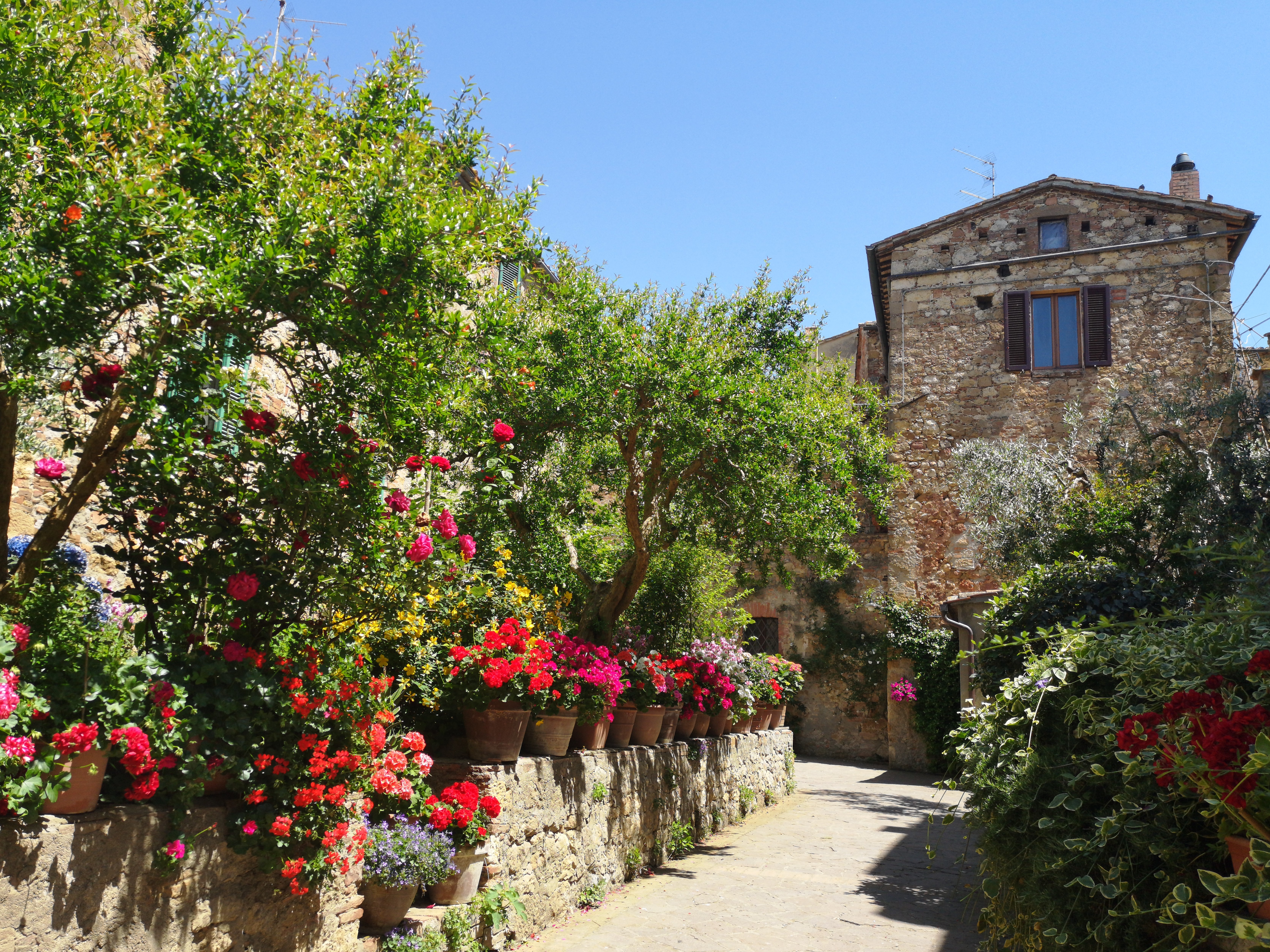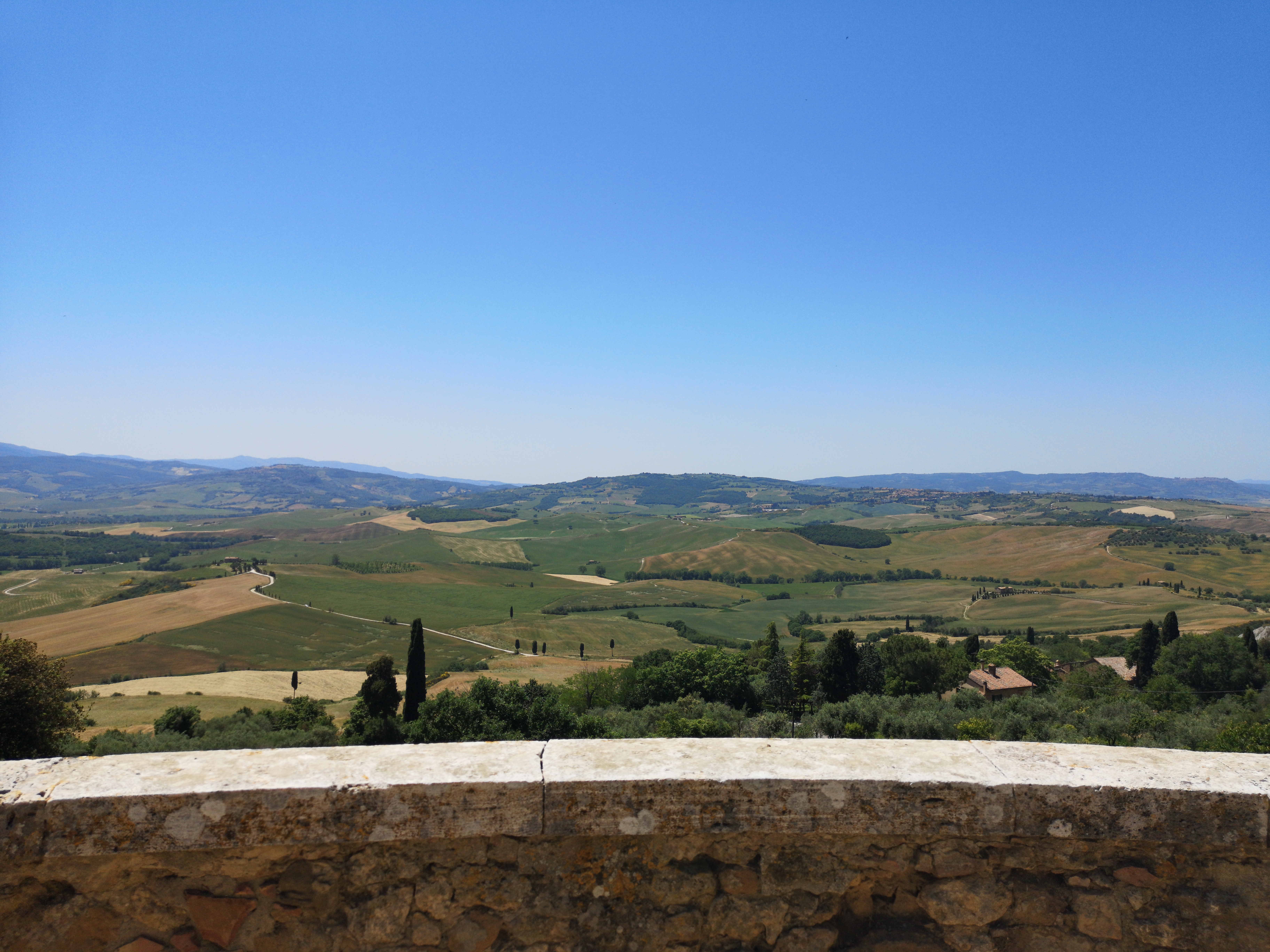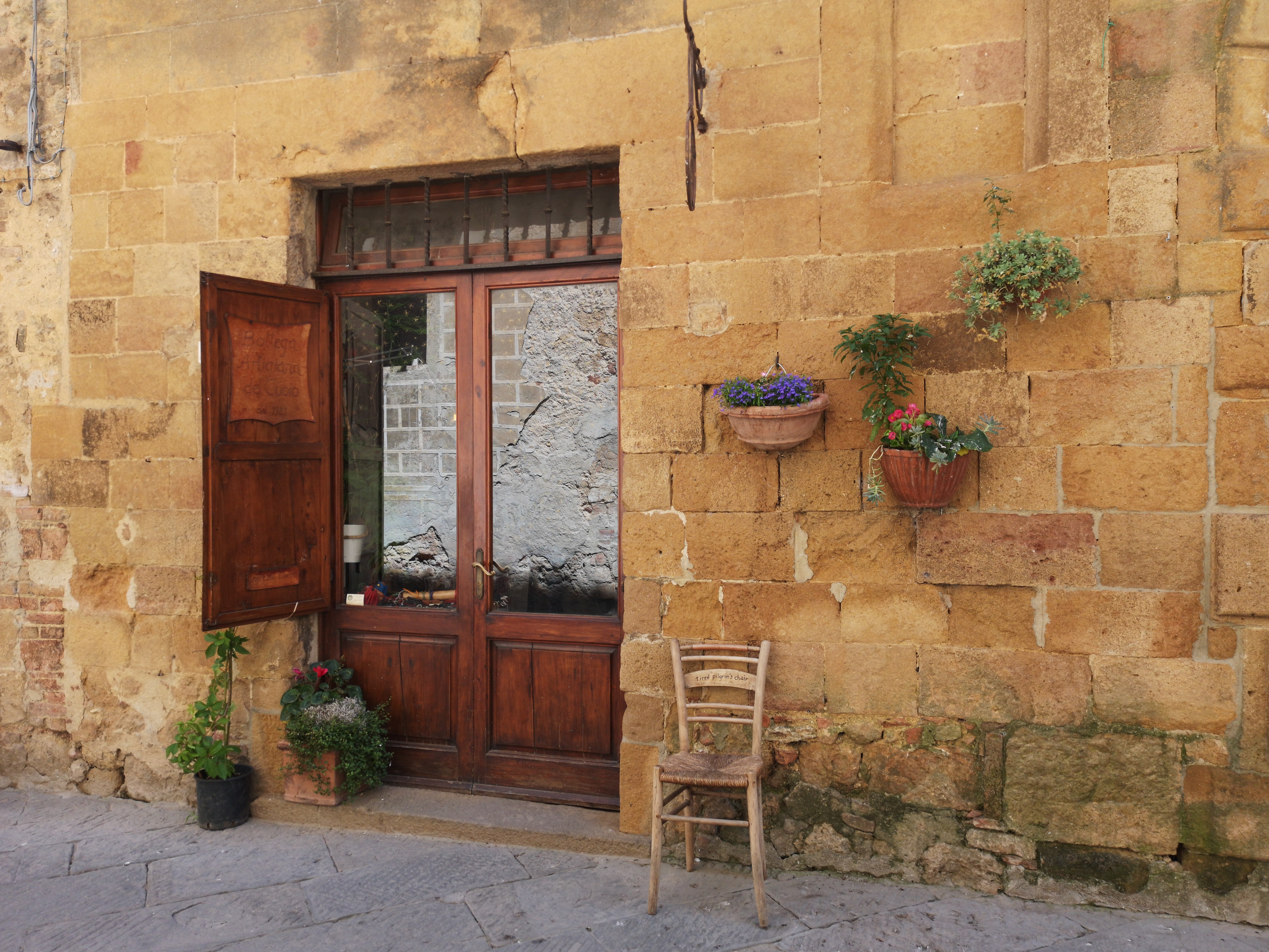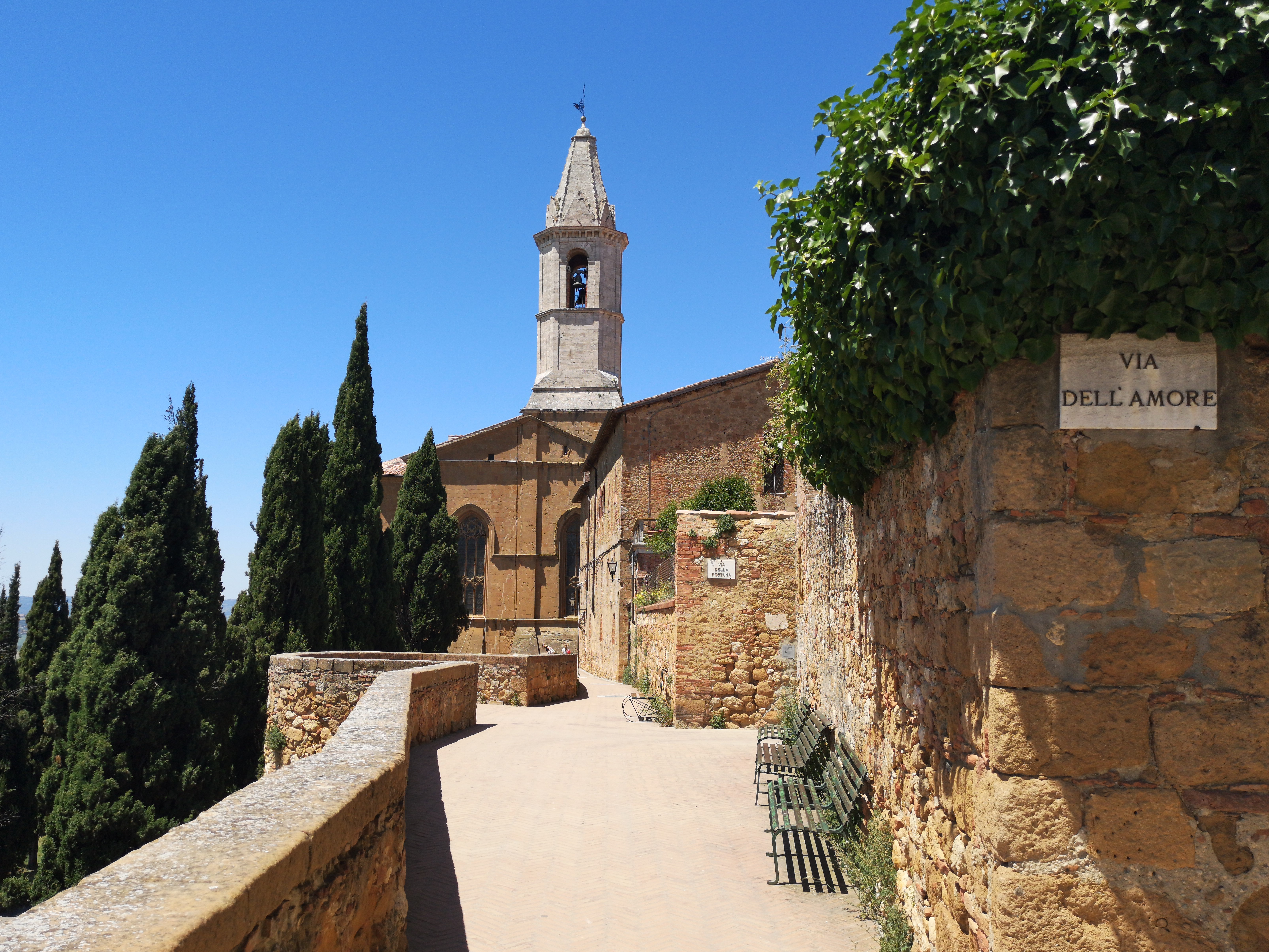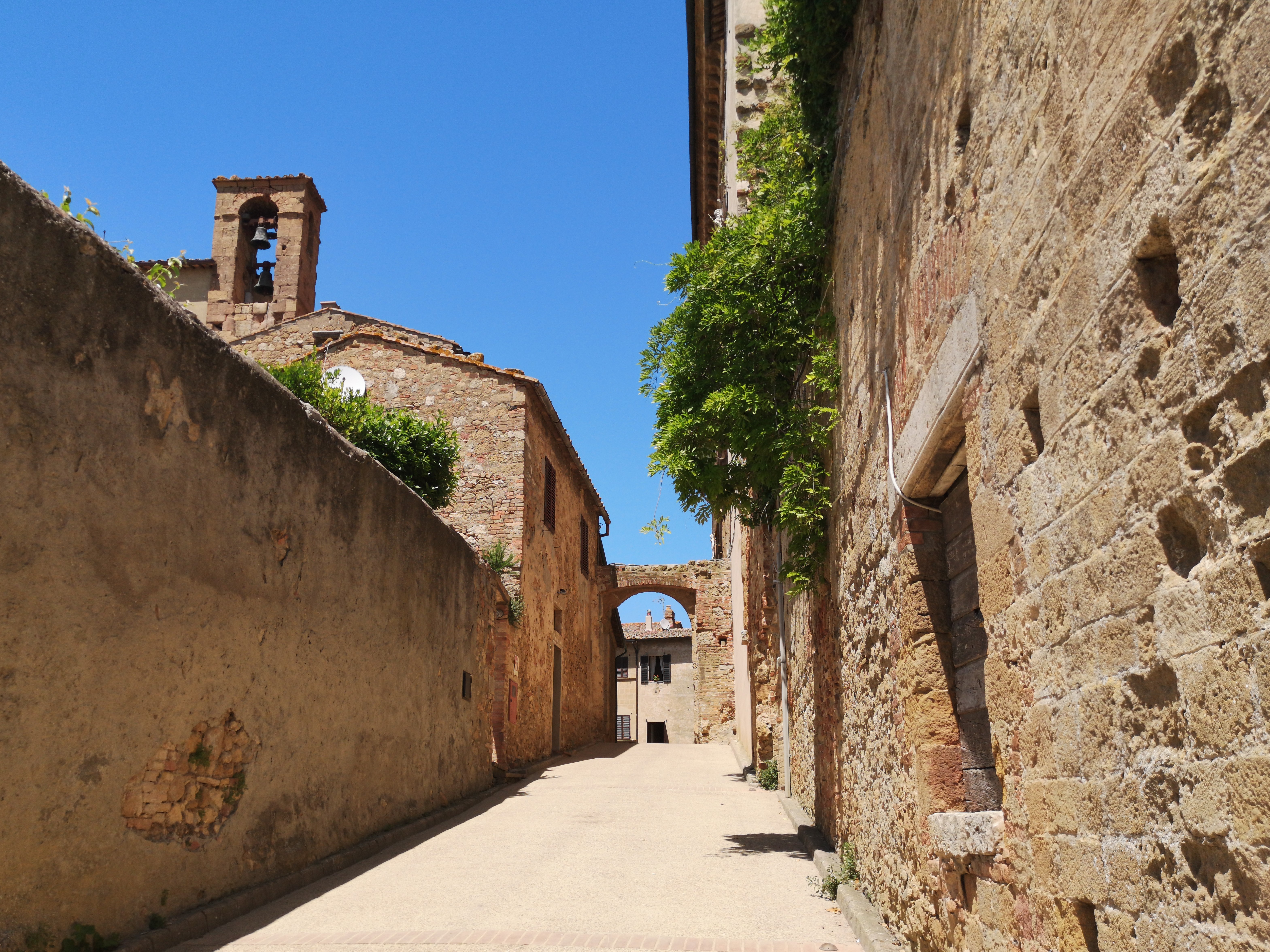 Leicht humpelnd bin ich dann in der Morgendämmerung hinab ins Tal marschiert. Auch wenn ein richtiger Fotograf aus der Stimmung und dem Licht am Morgen mehr „rausgeholt“ hätte… es war schon sehr beeindruckend, zu erleben, wie die Sonne langsam hinter Pienza aufging. Meine Fotos können das alles nur bedingt wiedergeben. Allein die Geräusche der verschiedensten Tiere von den umliegenden Bauernhöfen waren zu hören, sonst nichts. Das Reh im Wald und der verdammt große Hase, der mir über den Weg lief, waren beide zu schnell für meine Kamera. Aber sie machten den Morgen für mich rund. Um kurz nach sieben war ich dann wieder zurück und habe mich nochmal hingelegt. Gegen Mittag waren meine mittlerweile wieder 10 Zehen und ich dann bereit für eine entspannte Runde durch Pienza. Auch wenn ich hier vieles schon gesehen habe, war es schön, „ausgeruht“ ein wenig durch die Gassen zu bummeln. Ich bin ganz zuversichtlich, dass meine Füße morgen wieder in meine Wanderschuhe passen und ich zumindest eine kleine Etappe „wohin auch immer“ gehen kann.